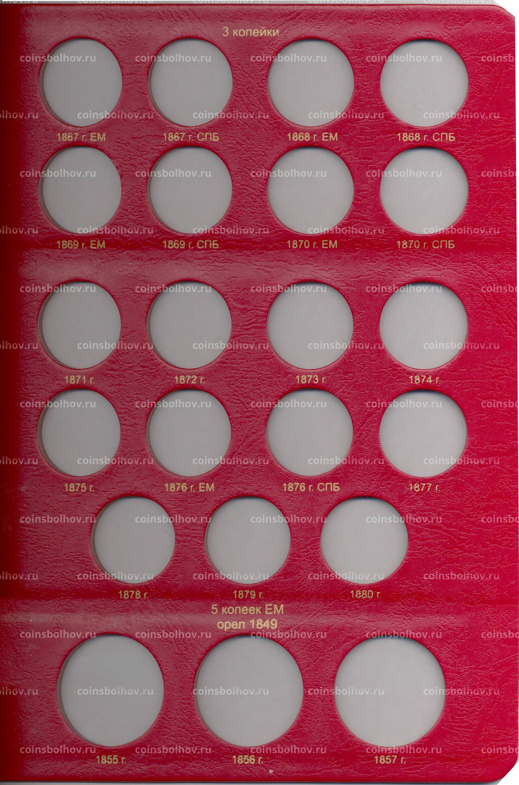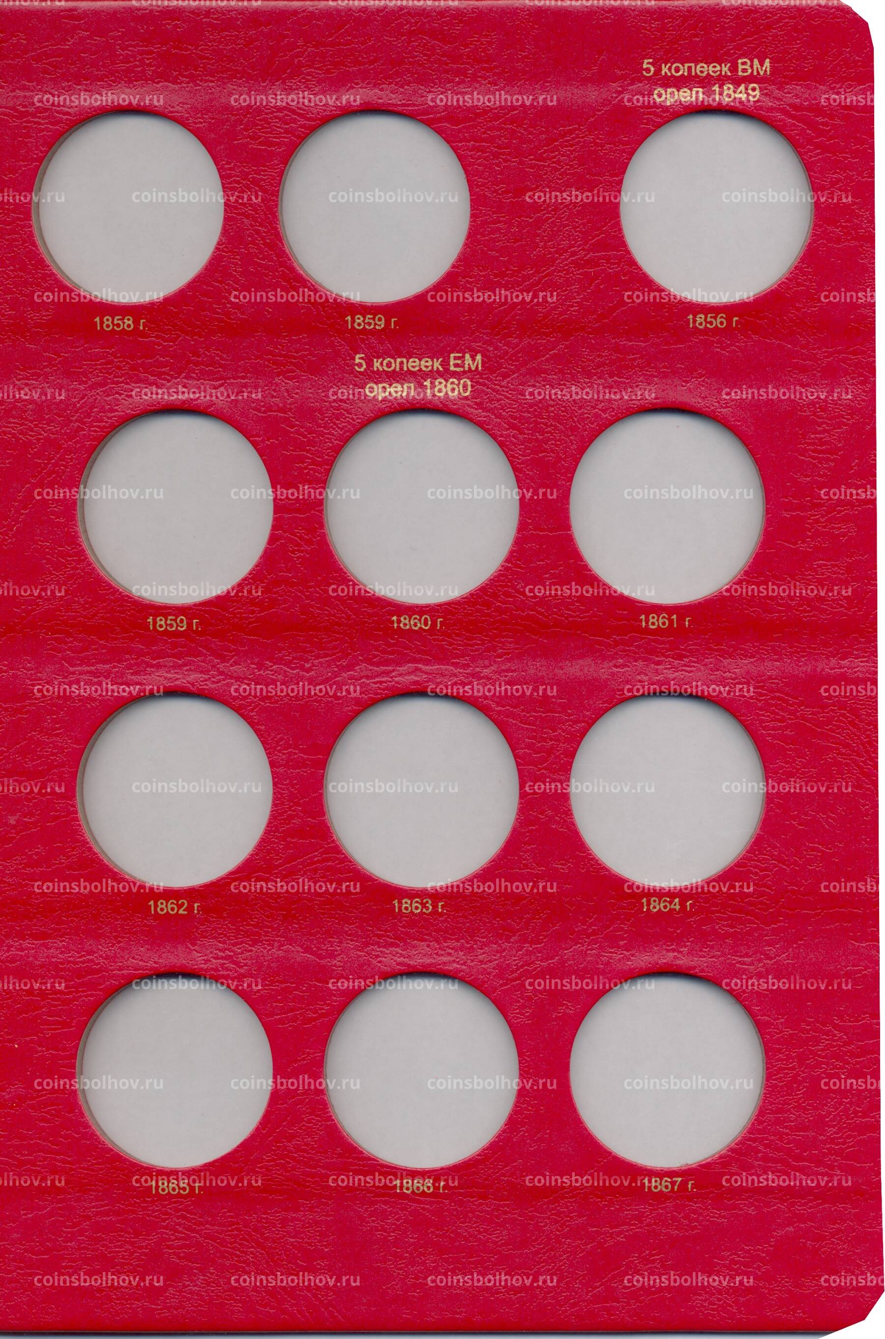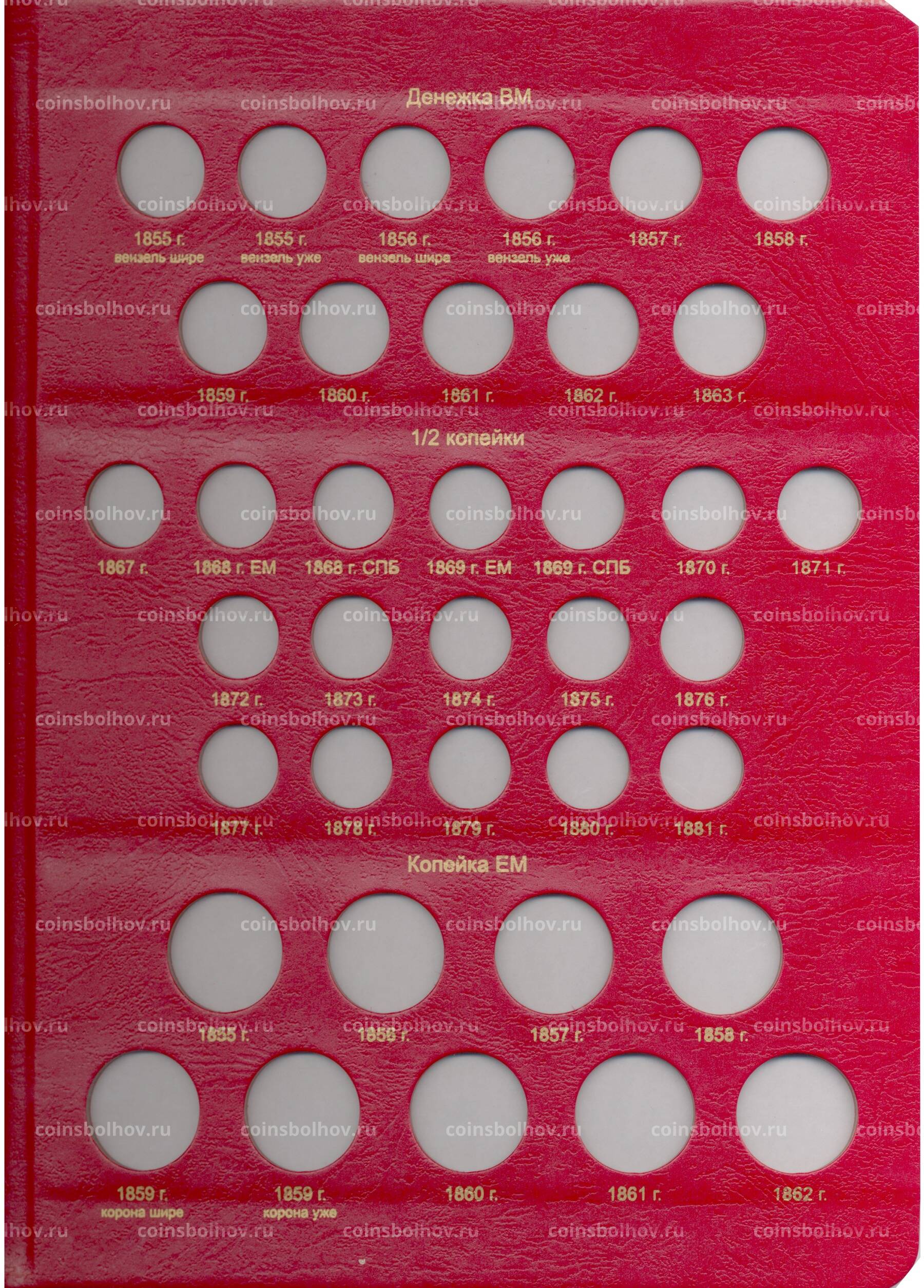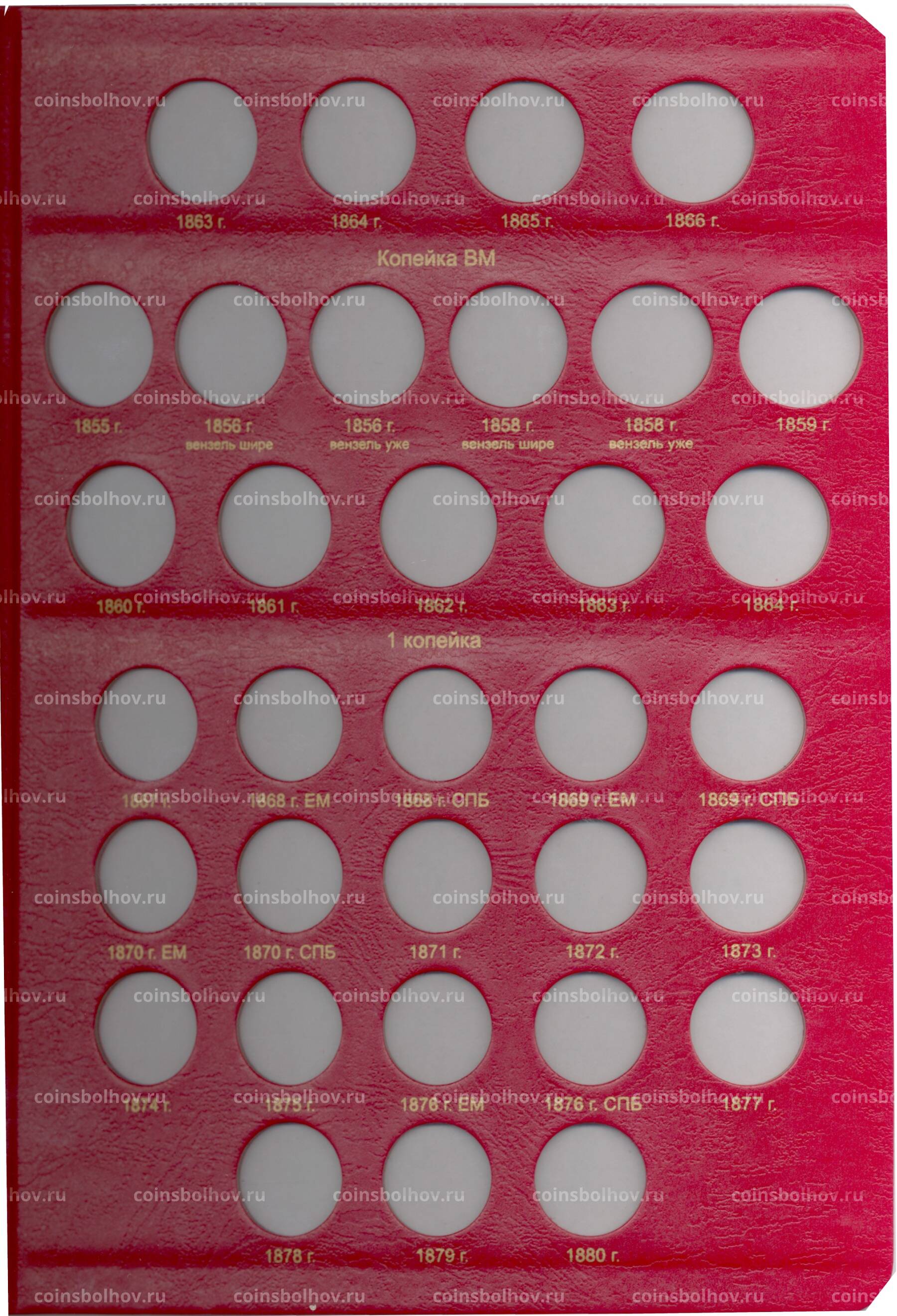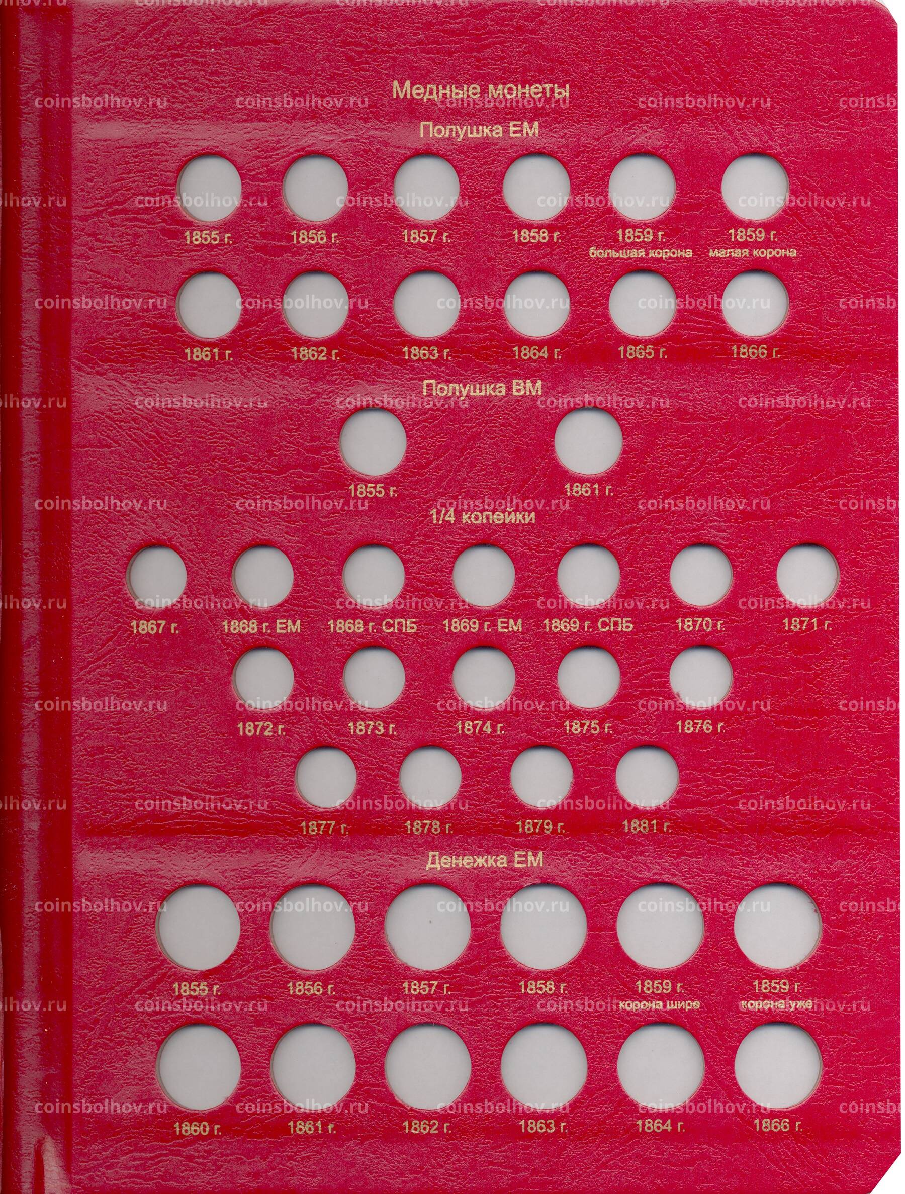 Альбом охватывает период правления Александра II и предназначен для медных монет номиналом от полушки до 5 копеек.