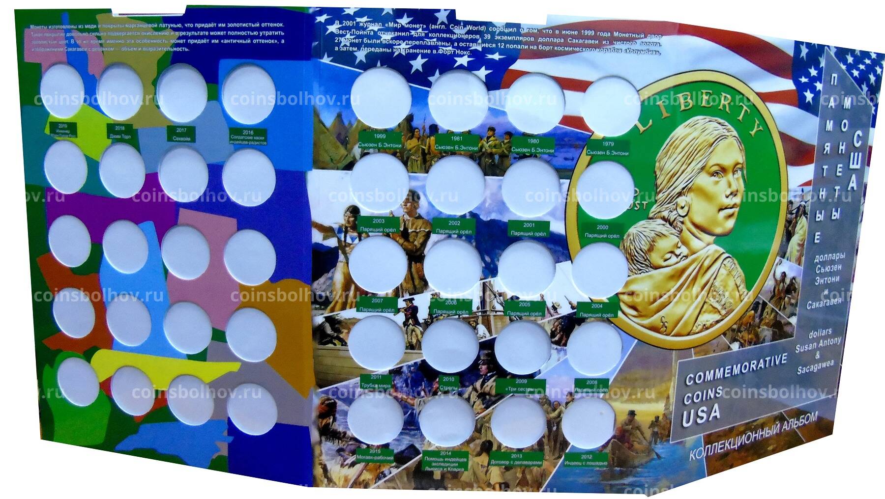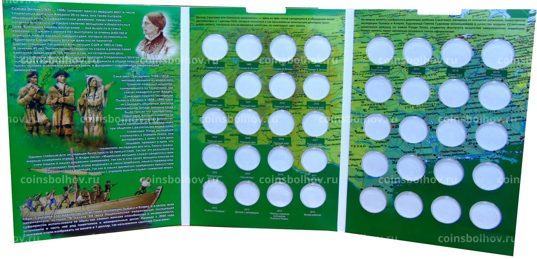 Альбом для 1 долларовых монет в количестве 32 штуки с 1979 по 2019 годы.