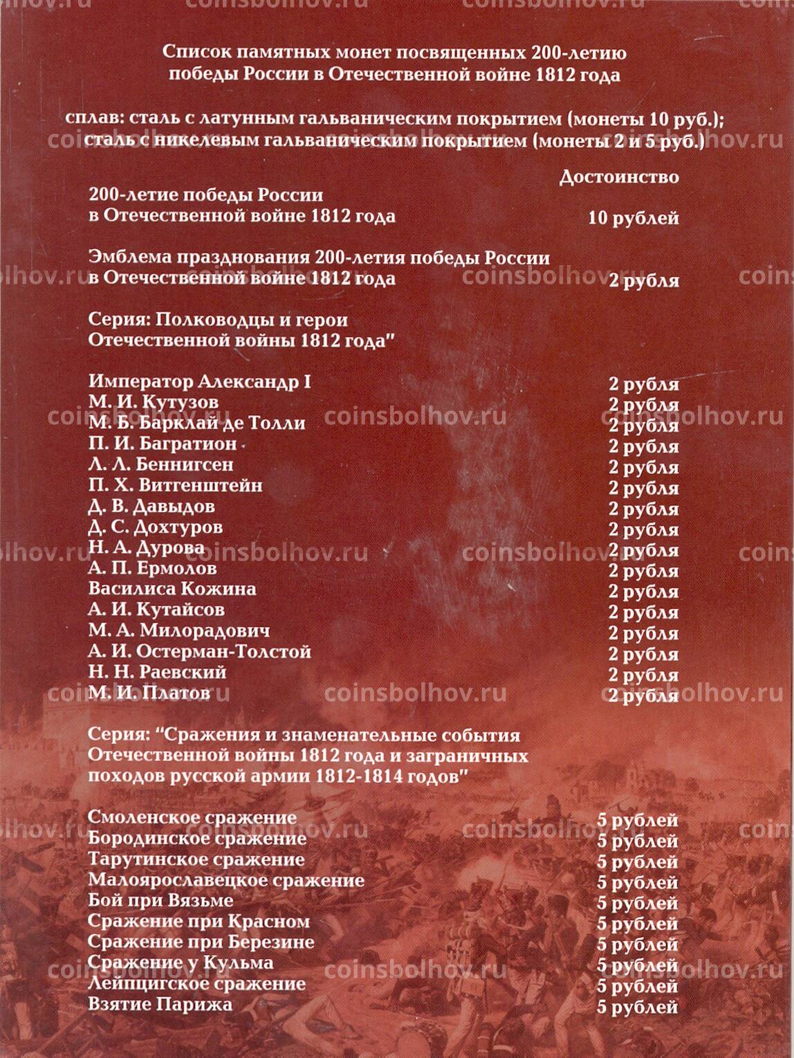 Альбом для монет 200-летие победы в Отечественной войне 1812 года (Бородино)