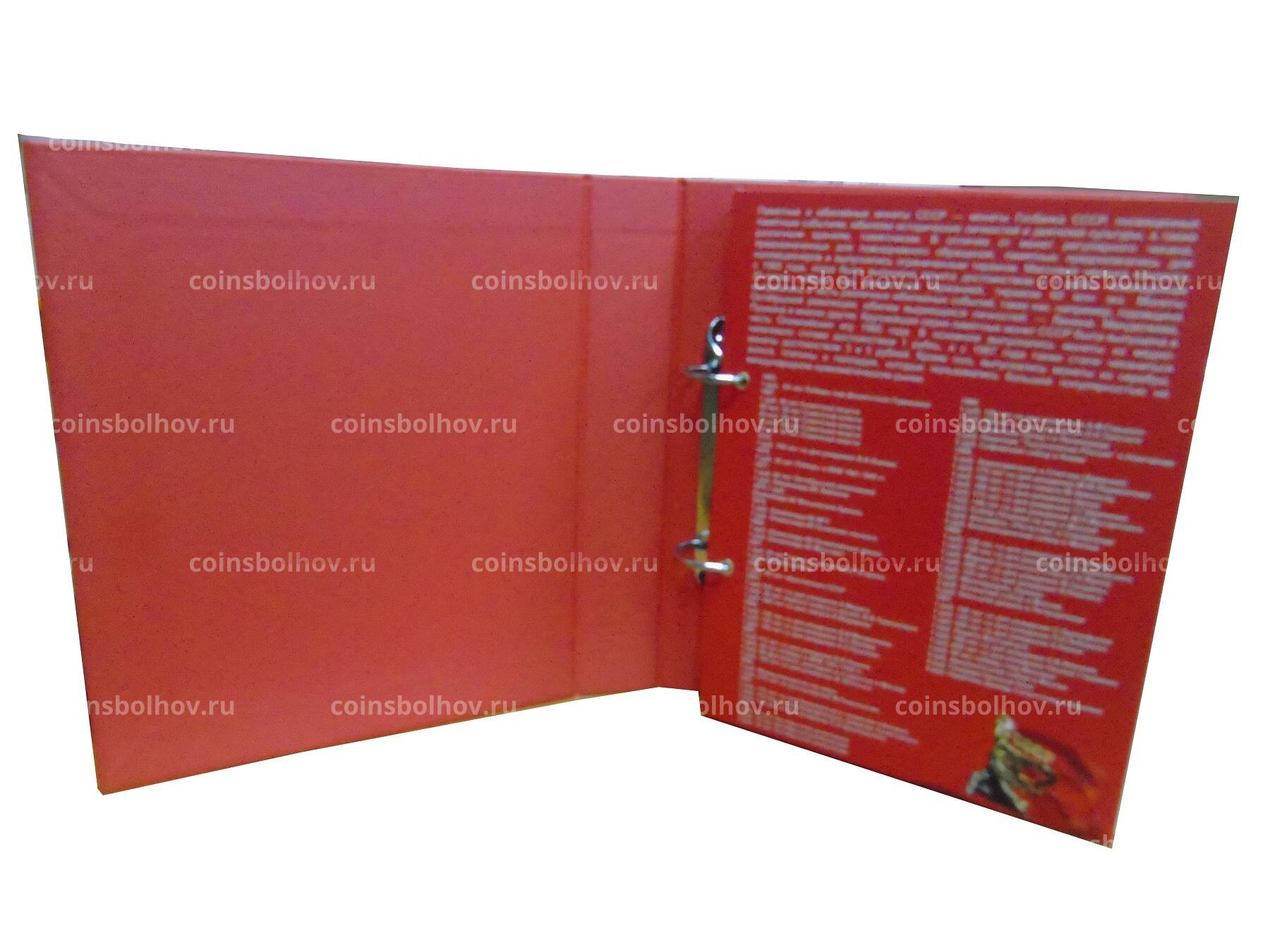 Монеты в альбоме видны с двух сторон. В альбоме находятся ячейки для всех юбилейных монет СССР 1965-1991 гг.