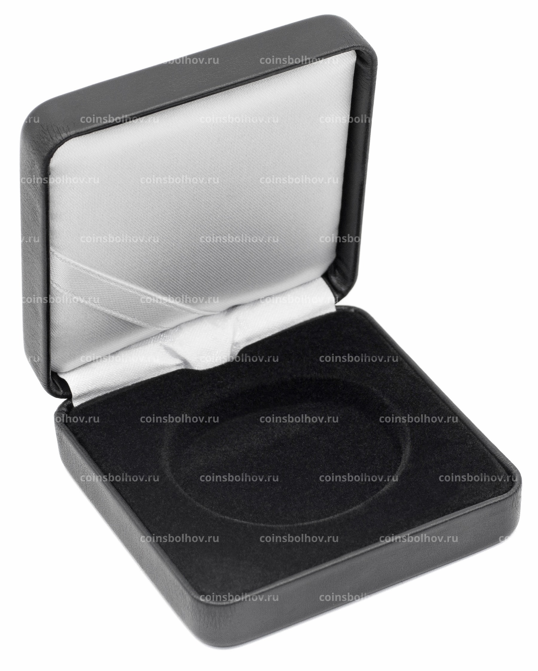 Благородный футляр для монет облицован черной обшивкой под кожу. Предназначен для хранения монет в капсулах. Прочный металлический футляр с ватированным покрытием из слегка рифленой искусственной кожи. Сатиновая подушечка, а также стильный бархатный вкладыш придают футляру особое очарование. К белой подушечке крышки прикреплена сатиновая ленточка, которая служит для размещения имеющегося сертификата. Наружный размер: 65х30х65 мм. Диаметр углубления: 28 мм.