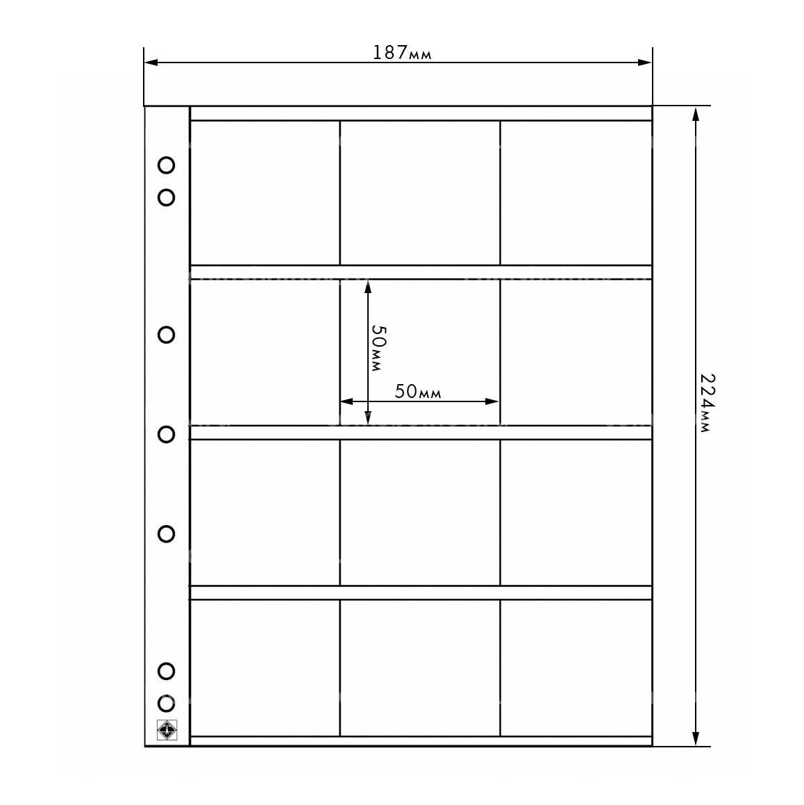 Лист для 12 монет в холдерах размером 50х50 мм формат «Numis» LEUCHTTURM 310444