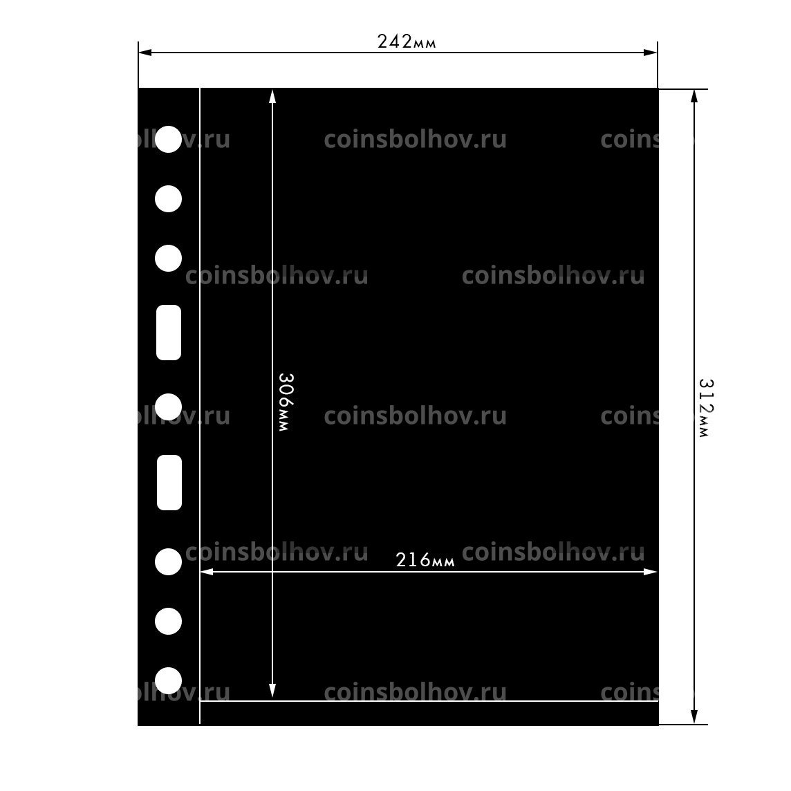 Двухсторонние черные листы S для банкнот формата «Гранд» (242х312 мм). Изготовлены из высококачественного синтетического материала (полиэстера), который хорошо сохраняет форму и не содержит химических смягчителей и кислот.