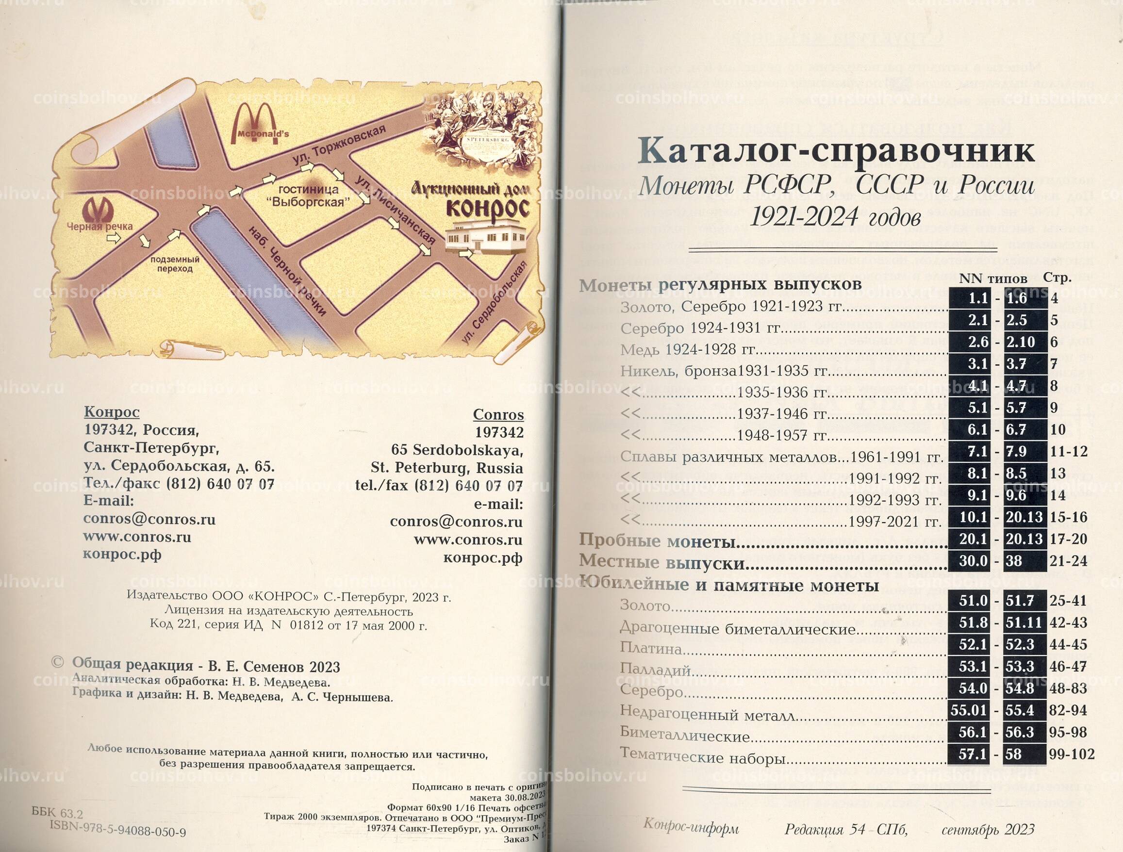 Каталог Монет РСФСР, СССР и России 1921 — 2024 годов (Конрос, сентябрь 2023 года)