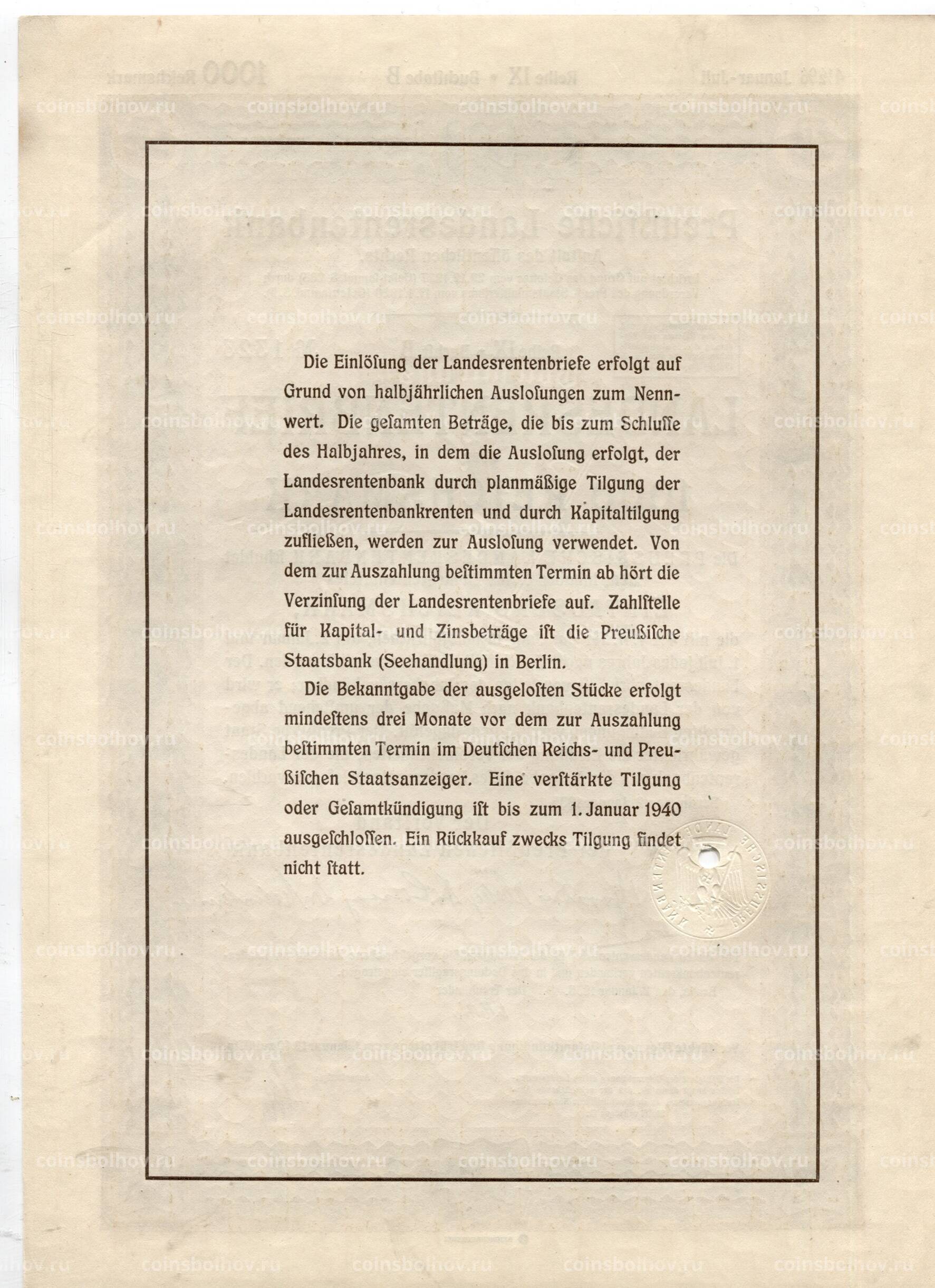 - Номинал 1000 рейхсмарок