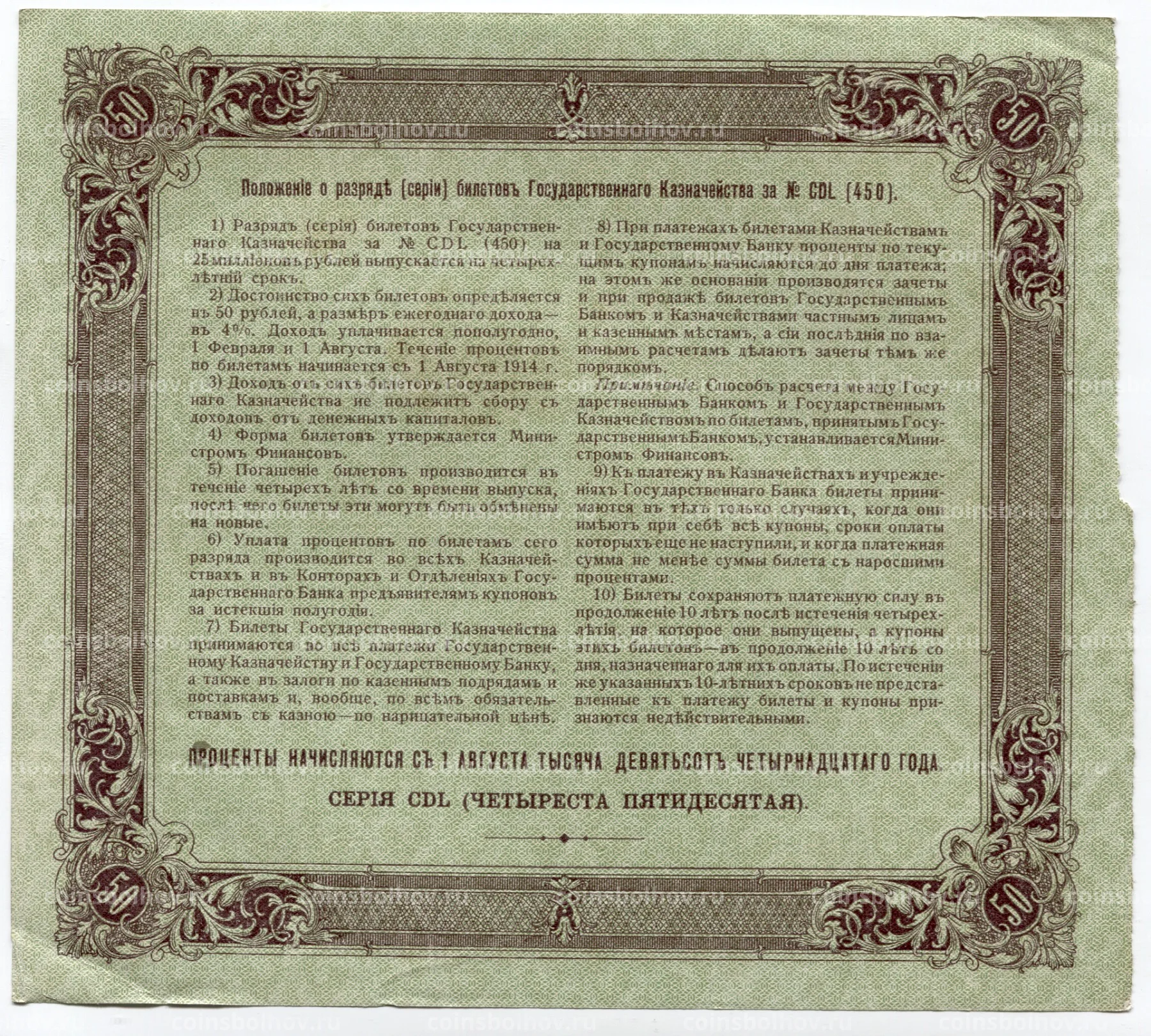 50 рублей 1914 года Облигация 4%