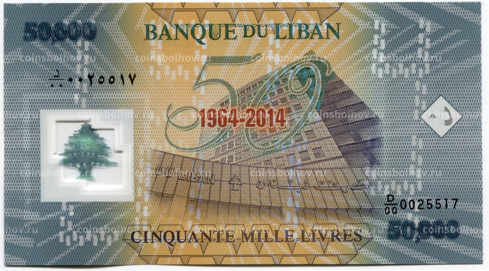 50000 ливров 2014 года Ливан — 50 лет банку Ливана