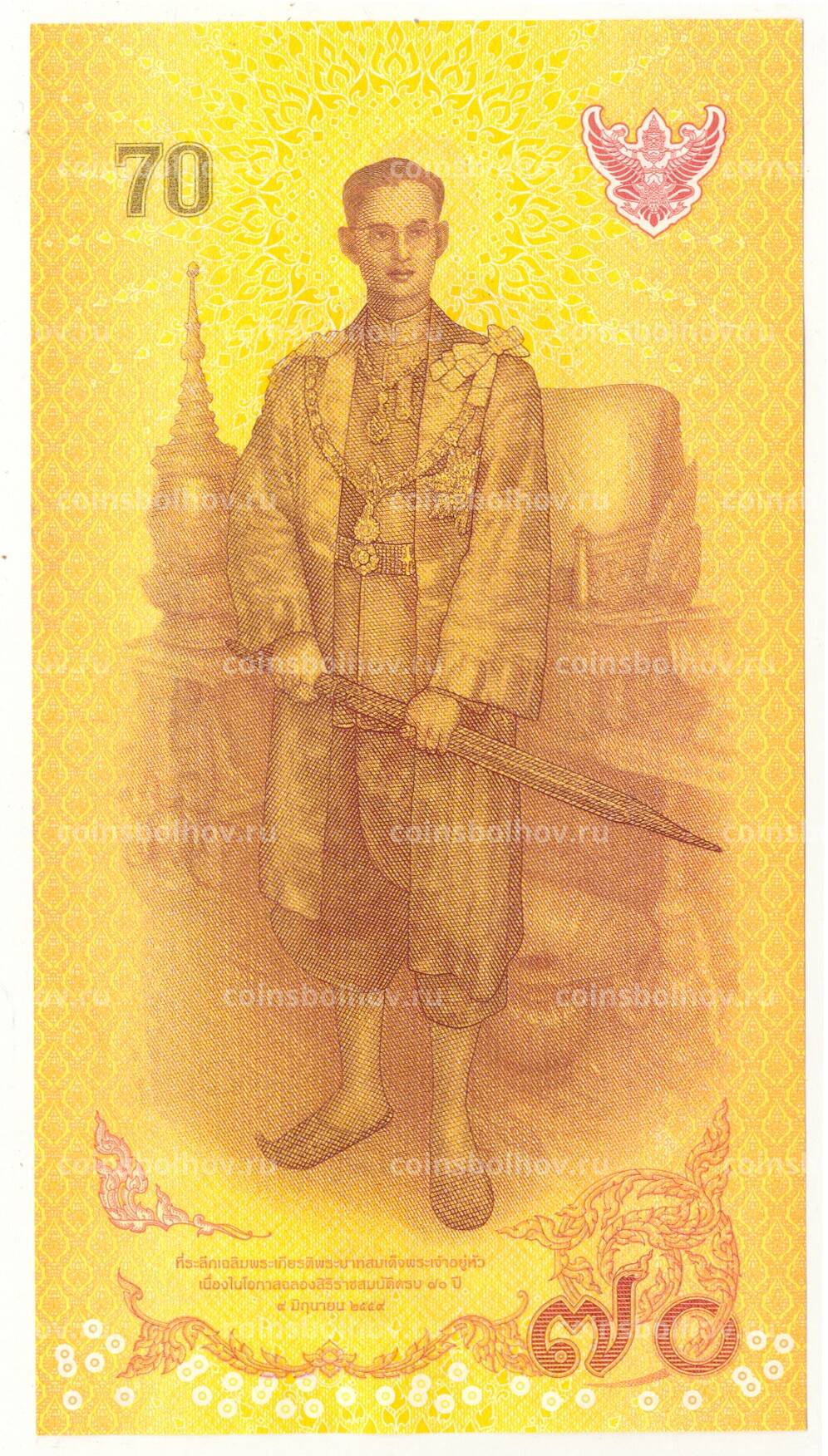 Банкнота 70 бат 2016 года Таиланд — 70 лет правления короля Рама IX