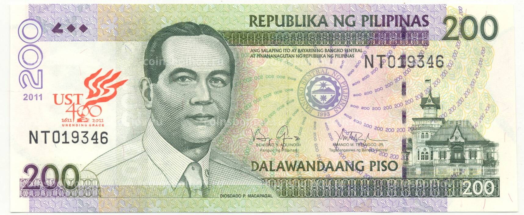 Банкнота 200 песо 2011 года Филиппины — 400 лет университету Святого Фомы