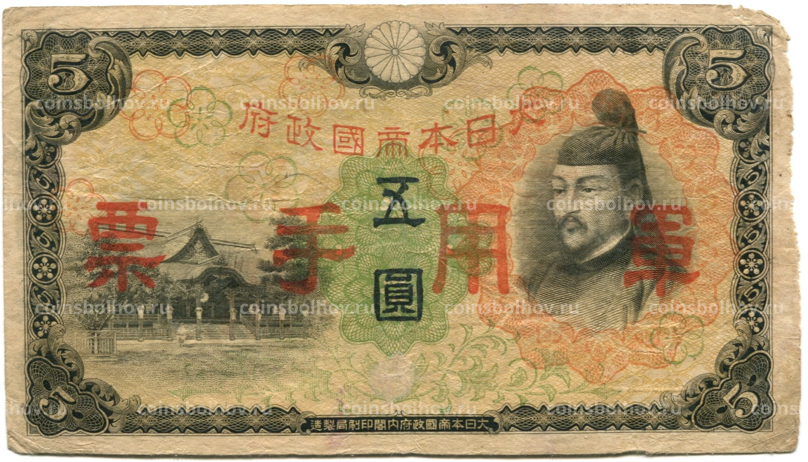 Банкнота 5 йен 1938 года Китай — Японская оккупация
