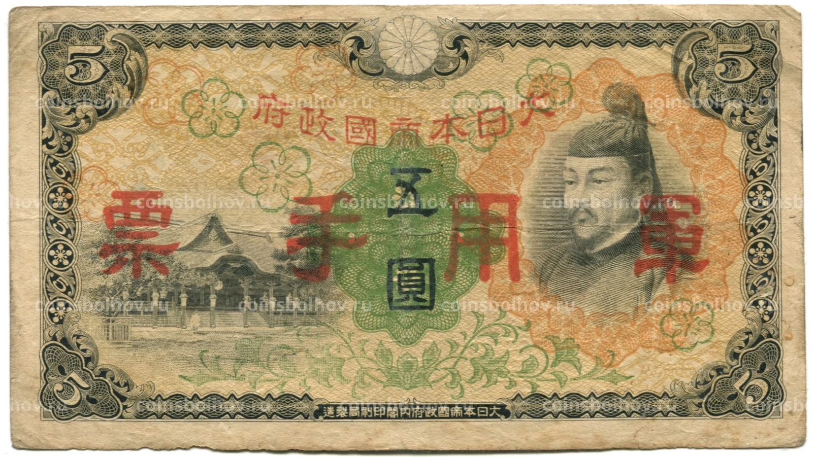 Банкнота 5 йен 1938 года Китай — Японская оккупация