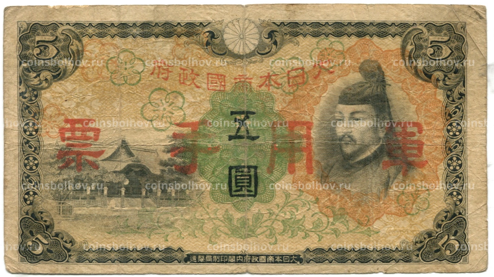 Банкнота 5 йен 1938 года Китай — Японская оккупация