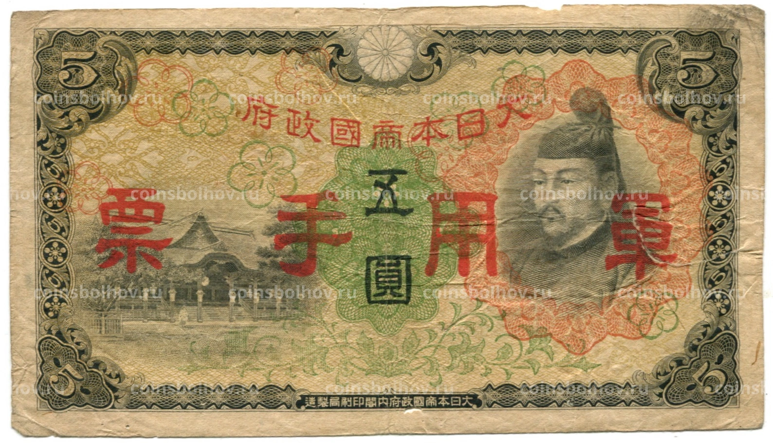 Банкнота 5 йен 1938 года Китай — Японская оккупация