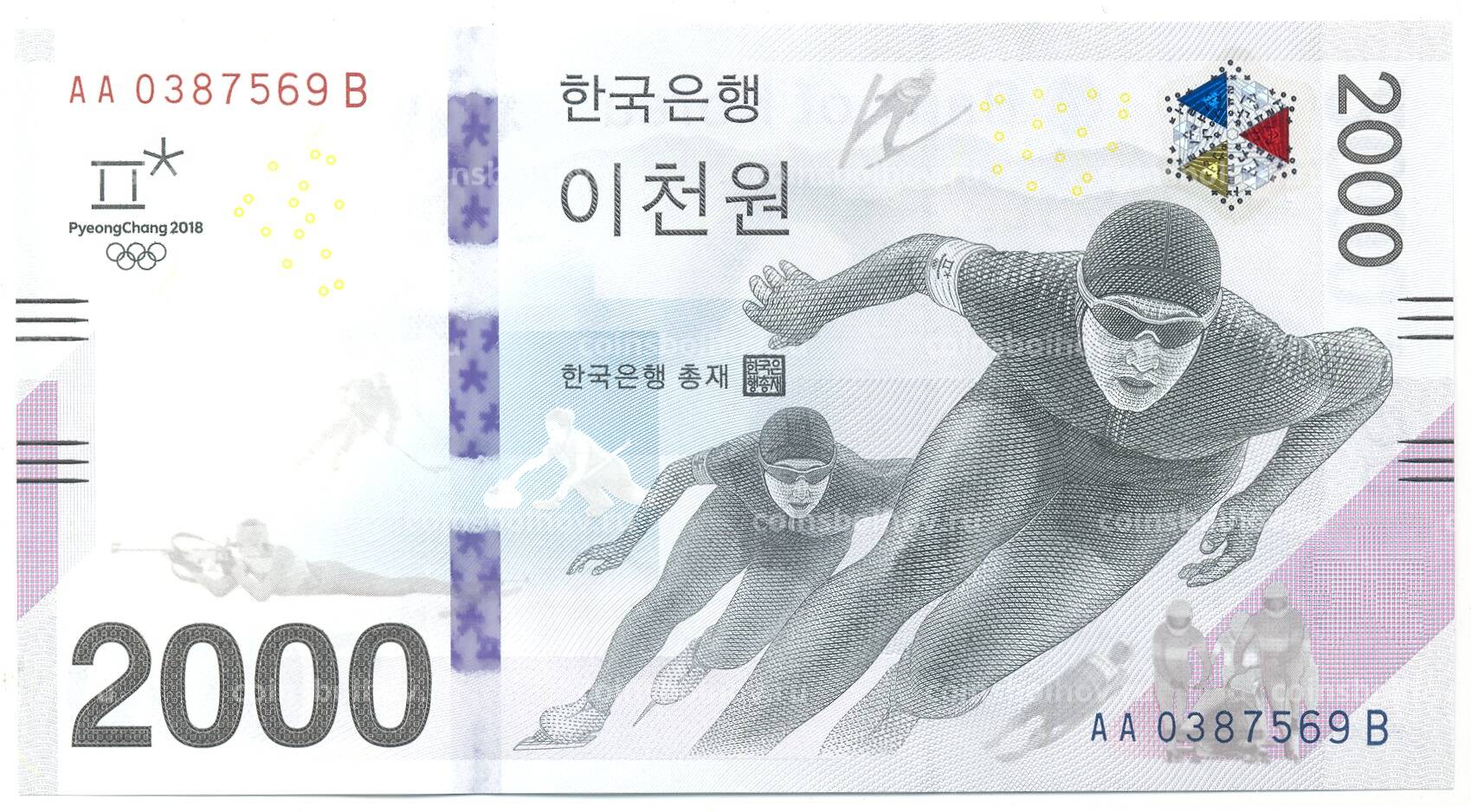 Банкнота 2000 вон 2018 года Южная Корея — Олимпиада 2018 в Пхёнчхане