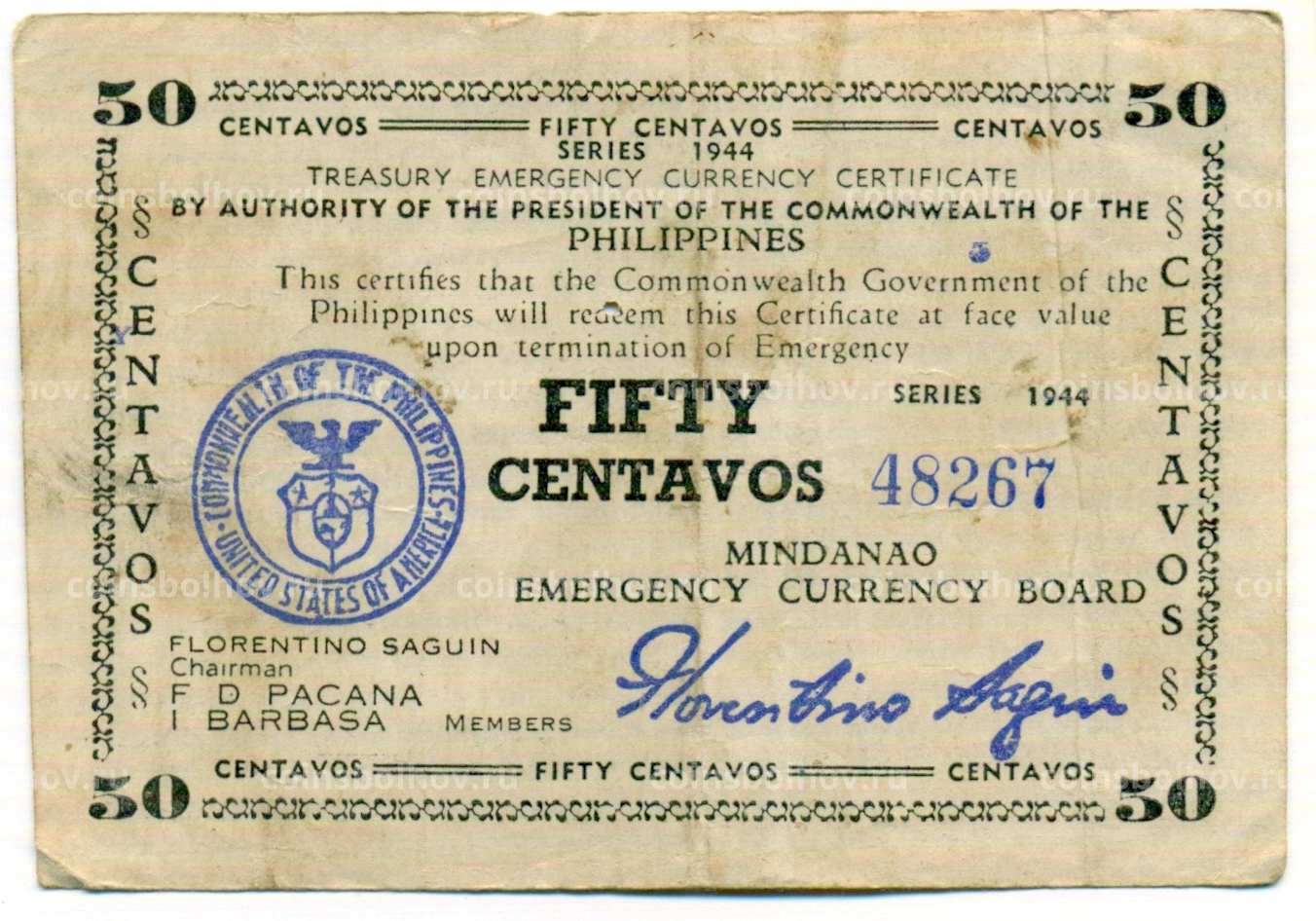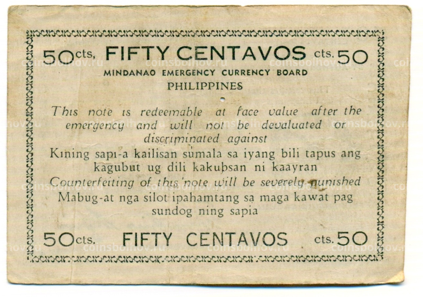 Банкнота 50 сентаво 1944 года Филиппины (Минданао, Администрация США)