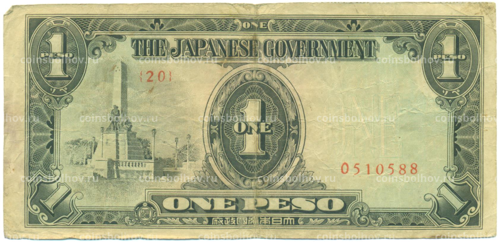 Банкнота 1 песо 1943 года Японская оккупация Филиппин