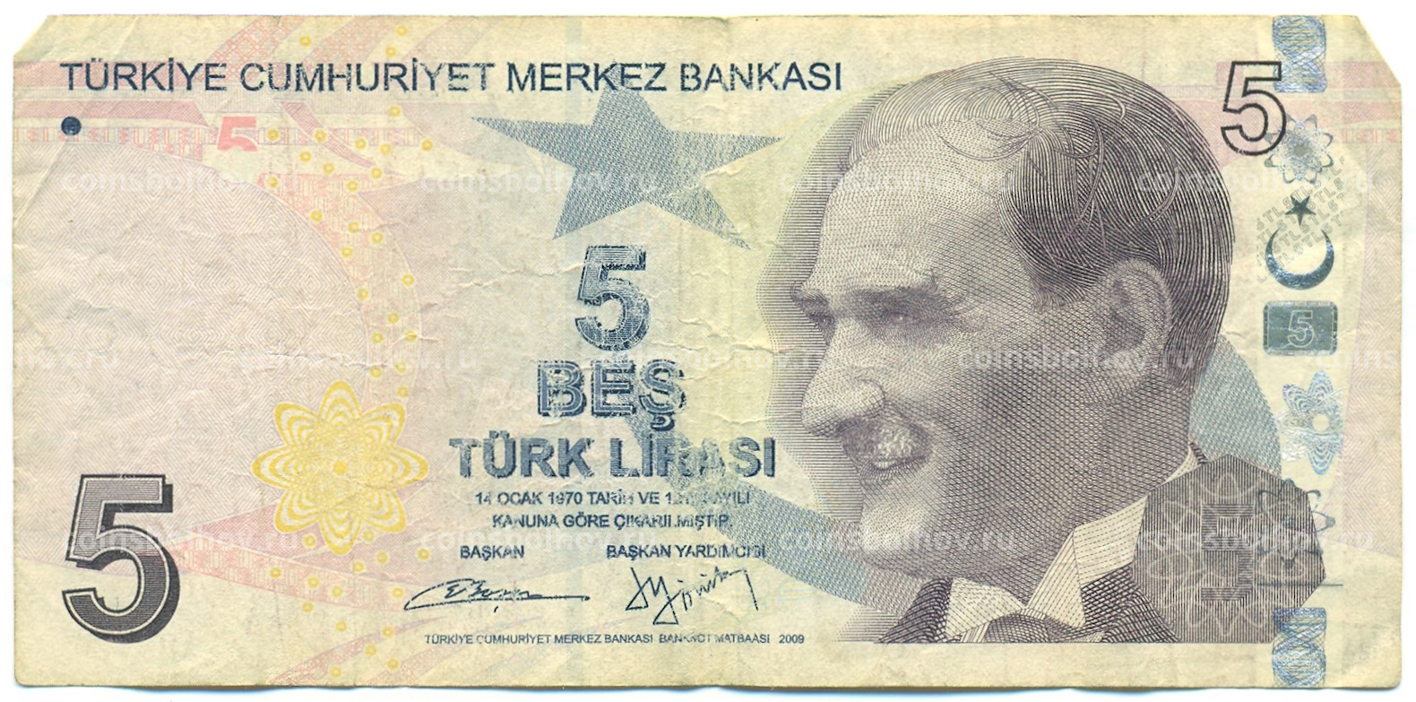 Банкнота 5 лир 2009 года Турция