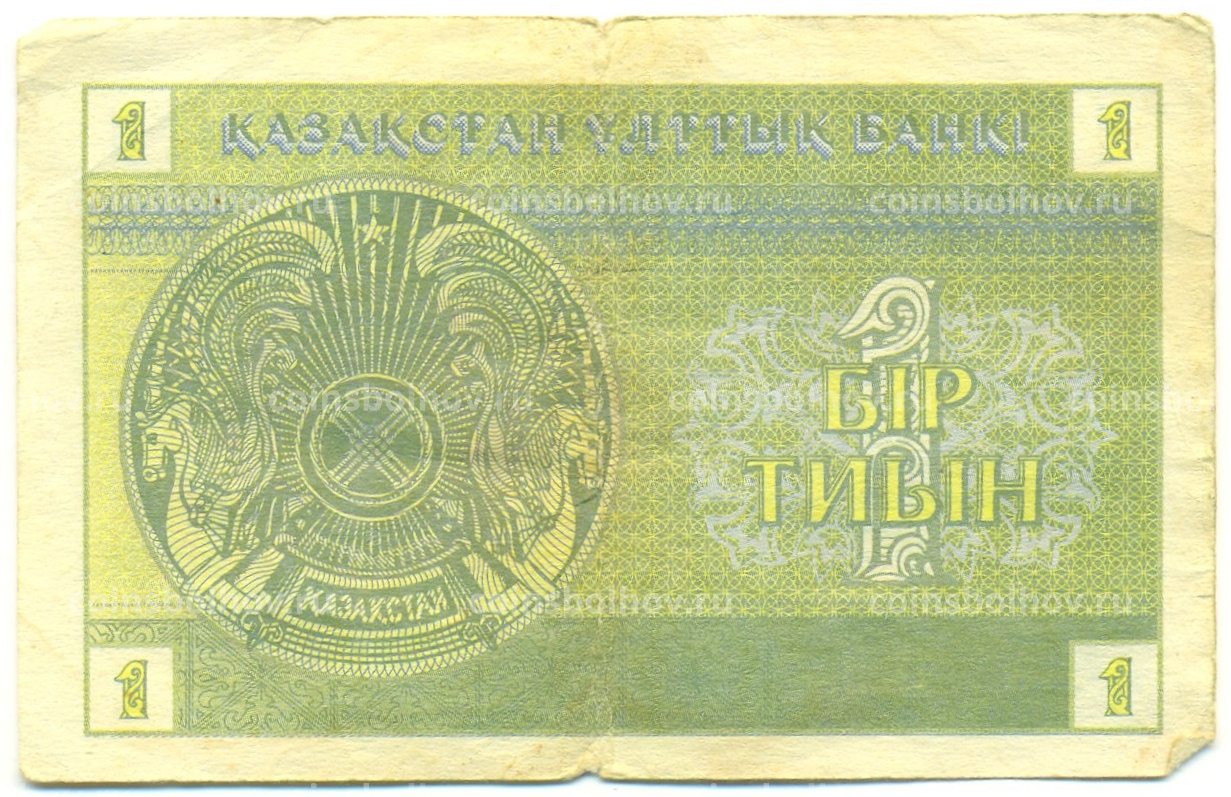 Банкнота 1 тиын 1993 года Казахстан