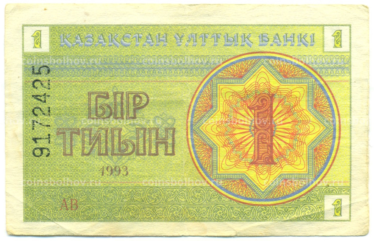 Банкнота 1 тиын 1993 года Казахстан