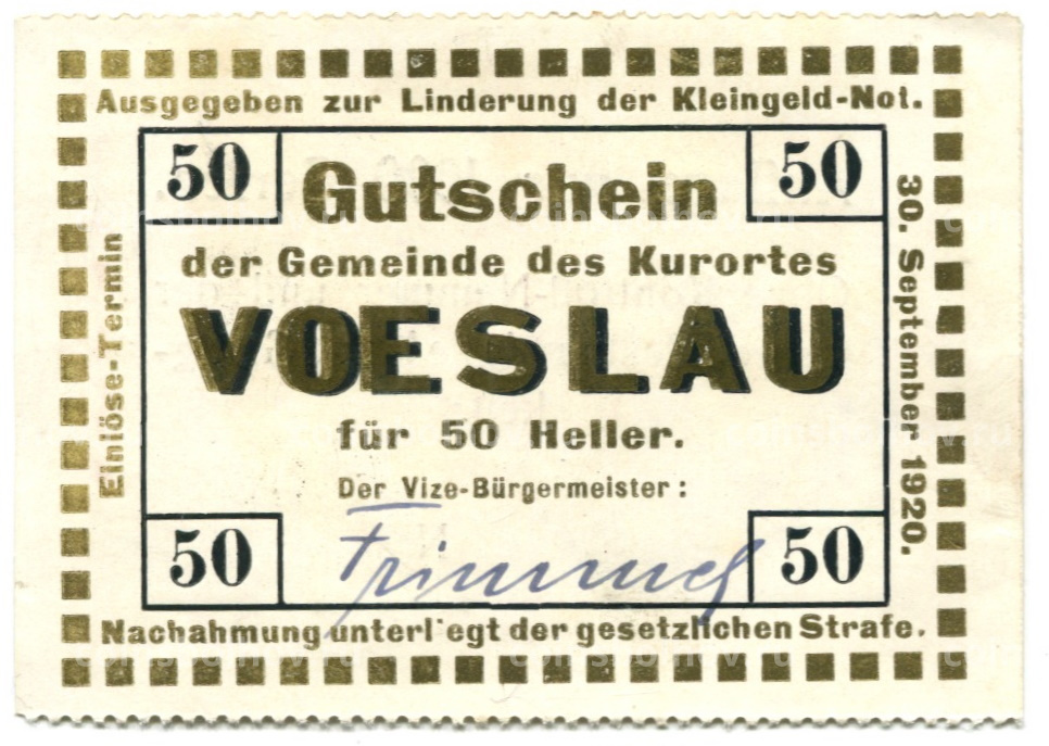 50 геллеров 1920 года Австрия — Фёслау (нотгельд)