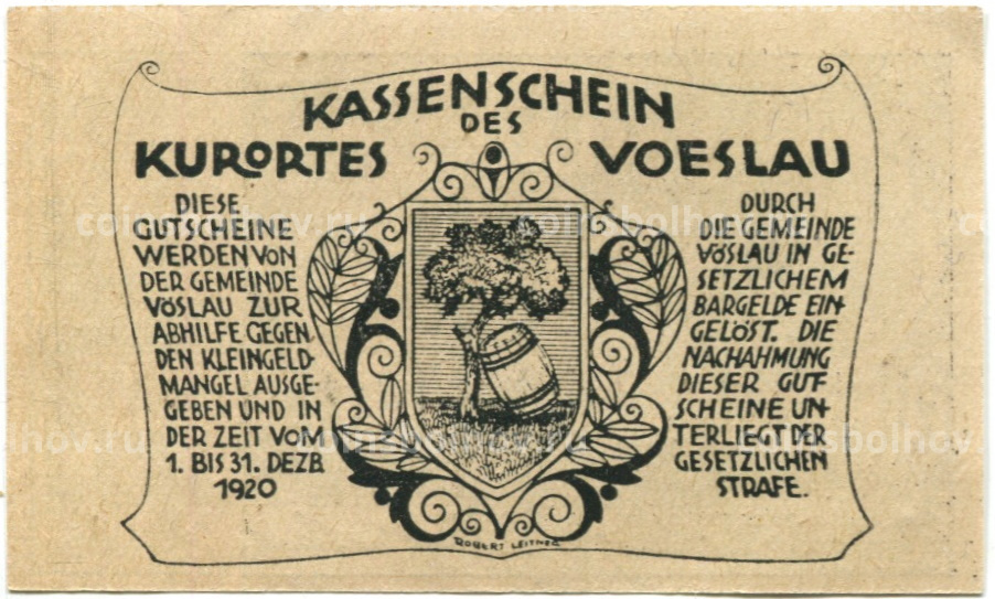 50 геллеров 1920 года Австрия — Фёслау (нотгельд)