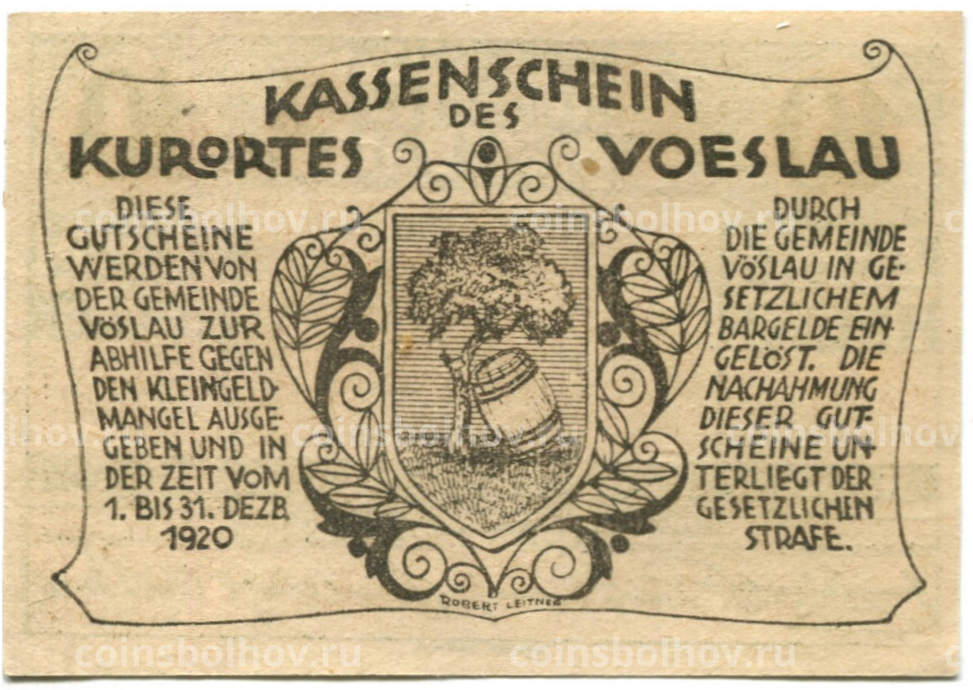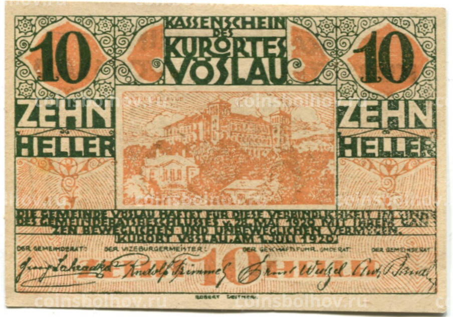 10 геллеров 1920 года Австрия — Фёслау (нотгельд)