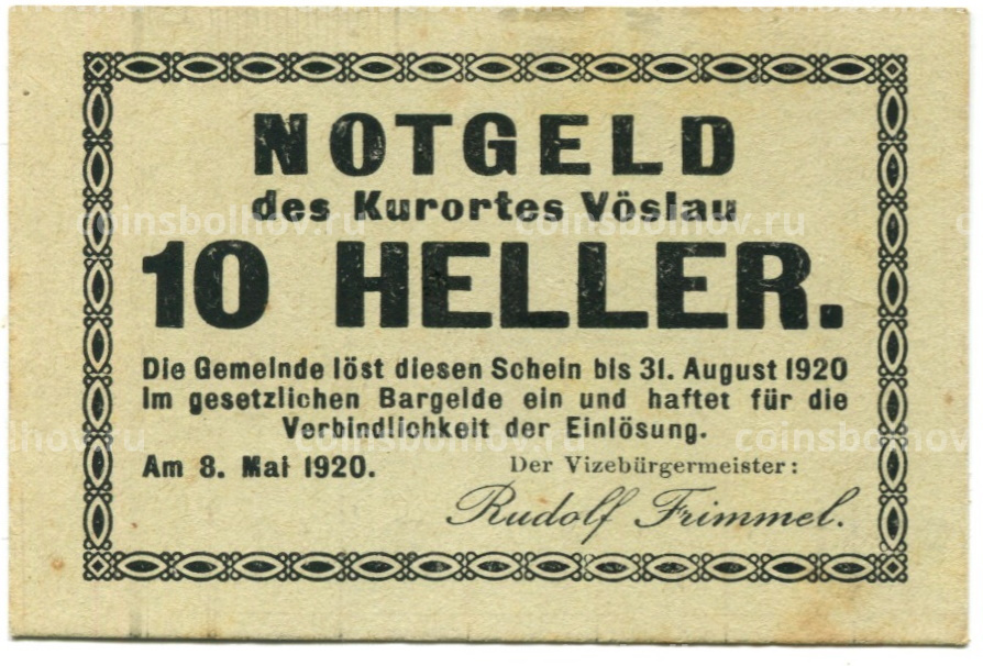 10 геллеров 1920 года Австрия — Фёслау (нотгельд)