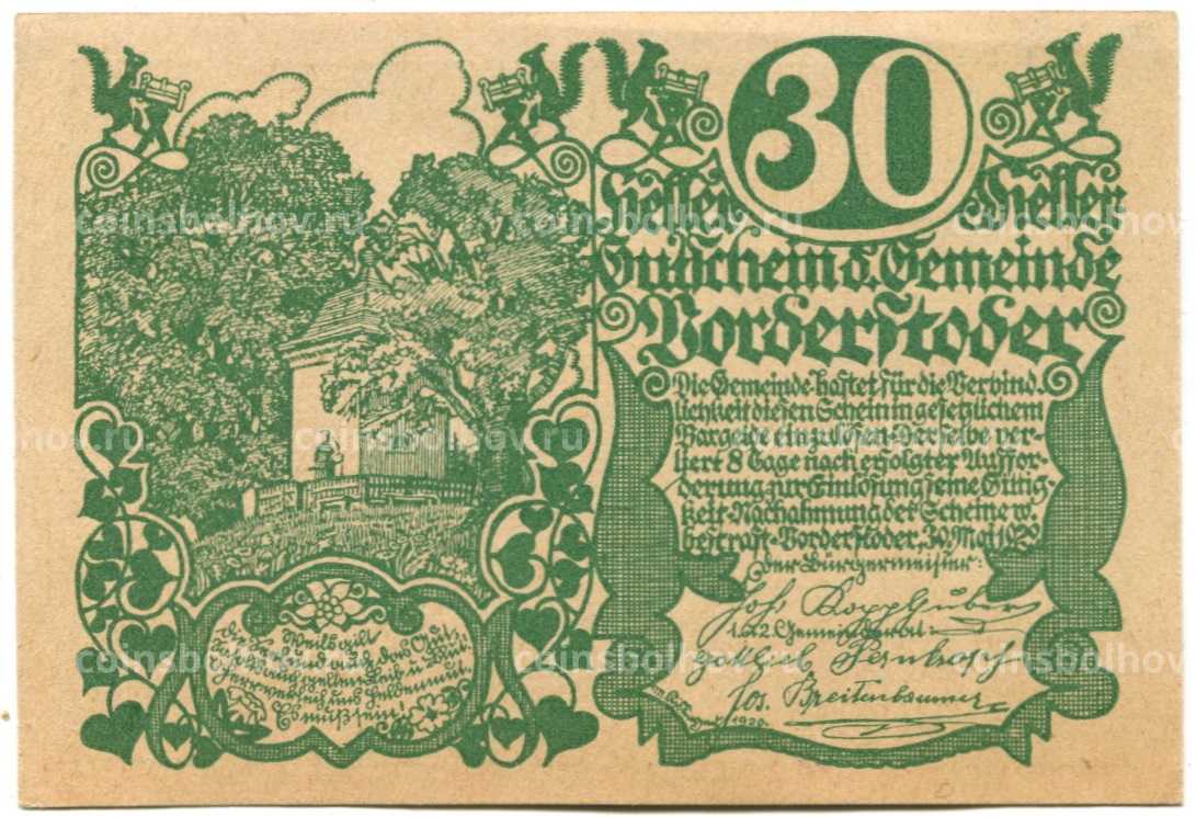 30 геллеров 1920 года Австрия — Фордерштойдер (нотгельд)