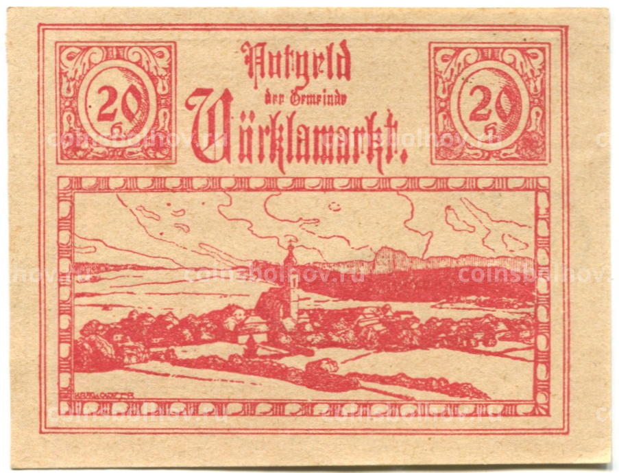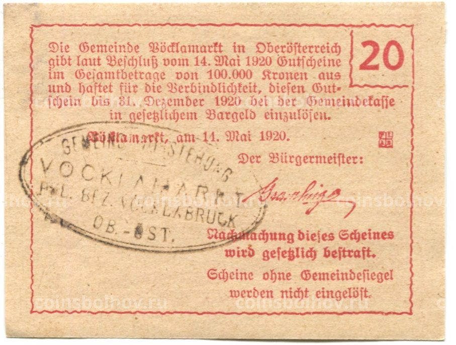 20 геллеров 1920 года Австрия — Фёлькермаркт(нотгельд)