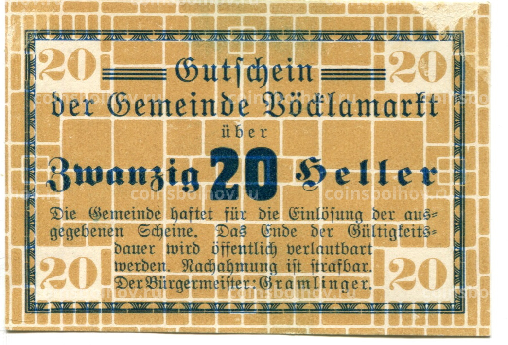 20 геллеров 1920 года Австрия — Фёлькермаркт(нотгельд)