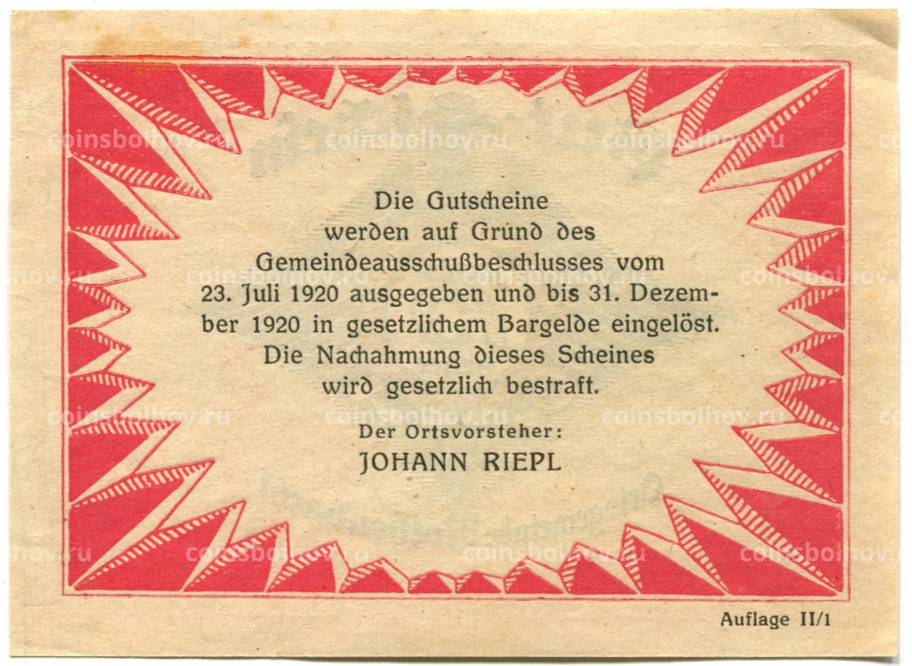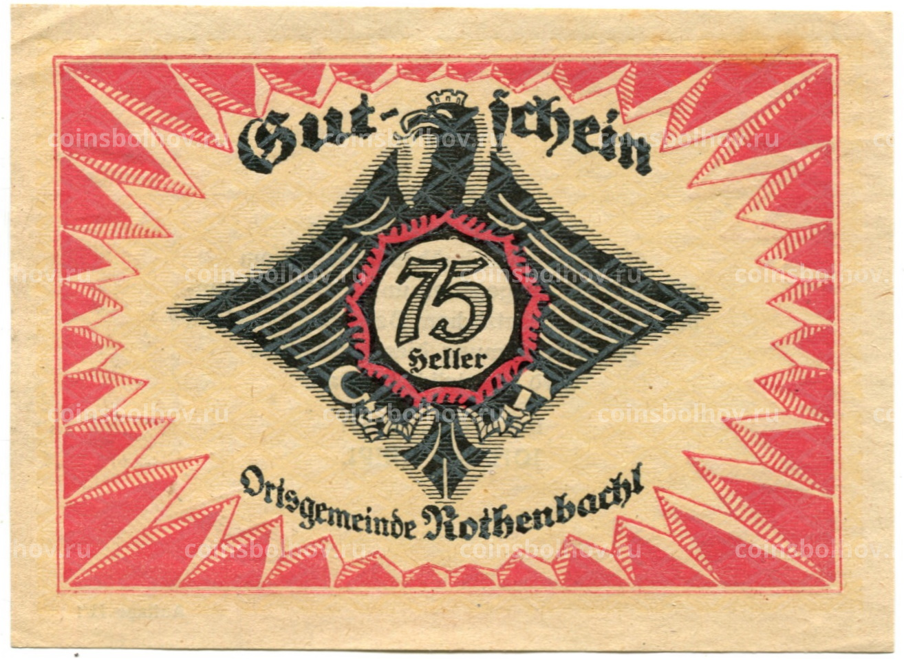 75 геллеров 1920 года Австрия — Роттенбах (нотгельд)