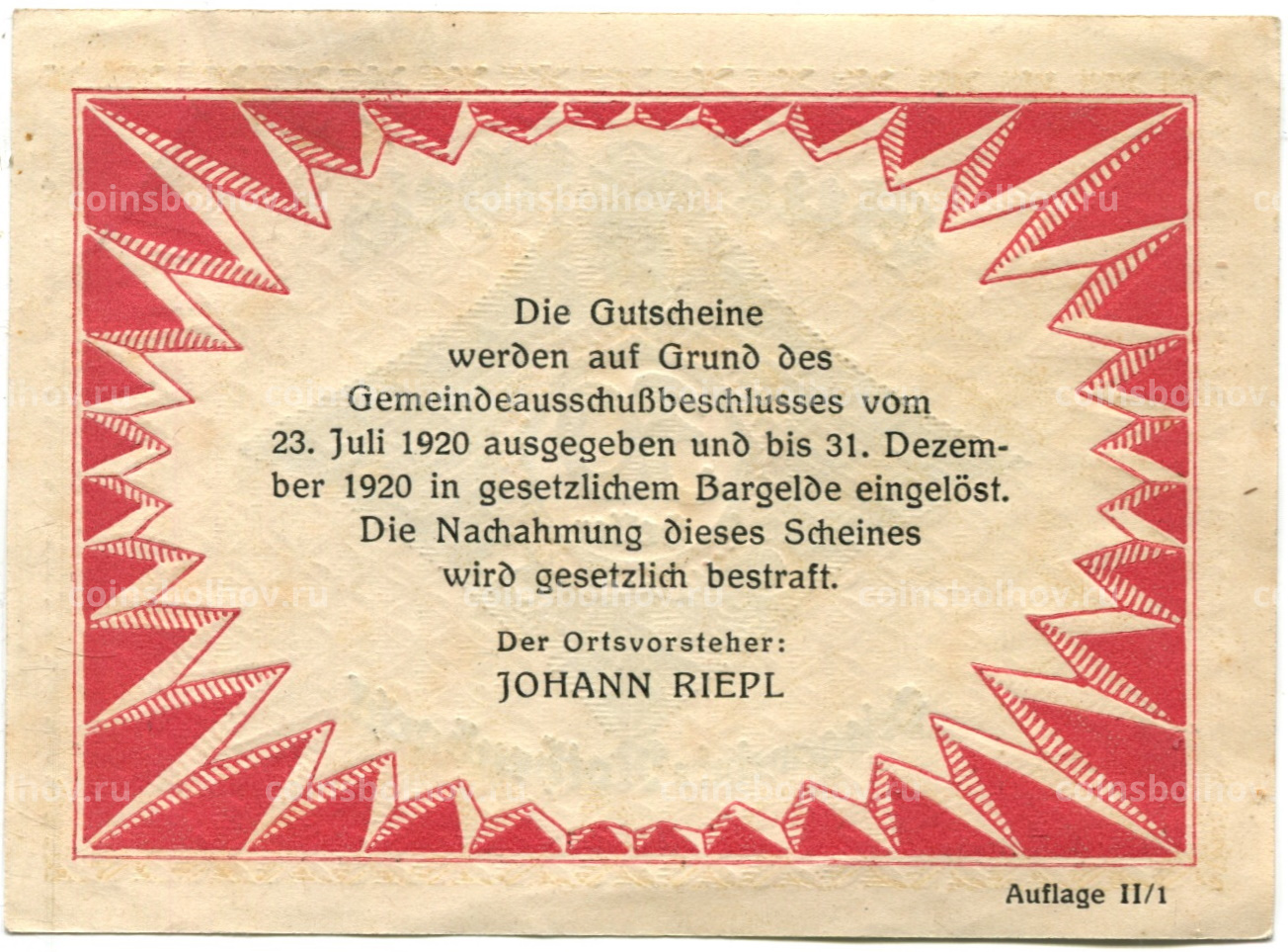 30 геллеров 1920 года Австрия — Роттенбах (нотгельд)