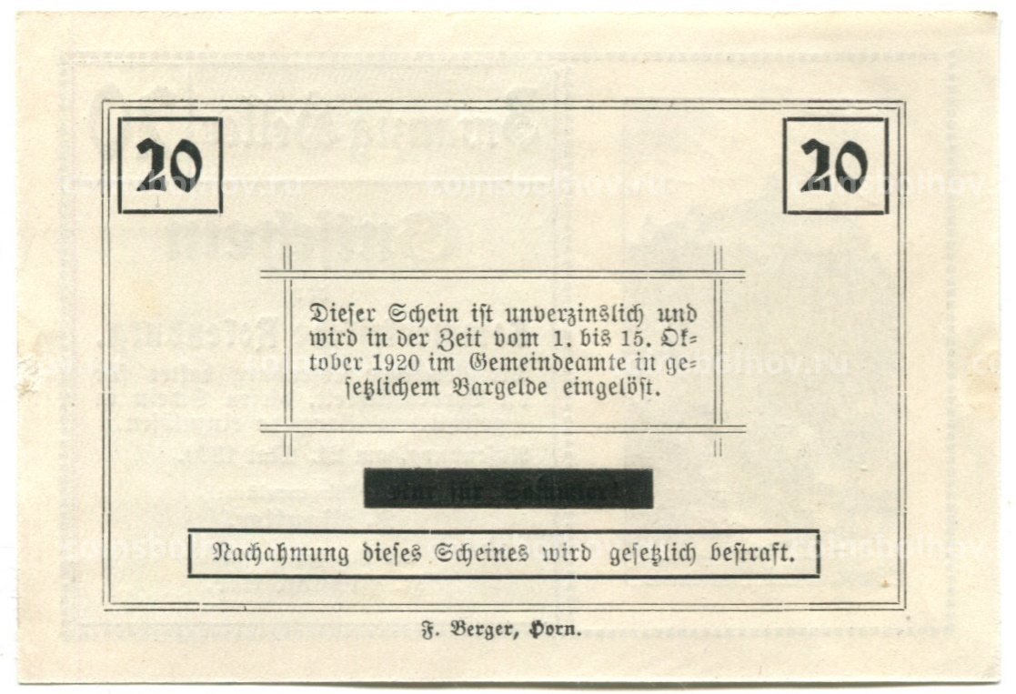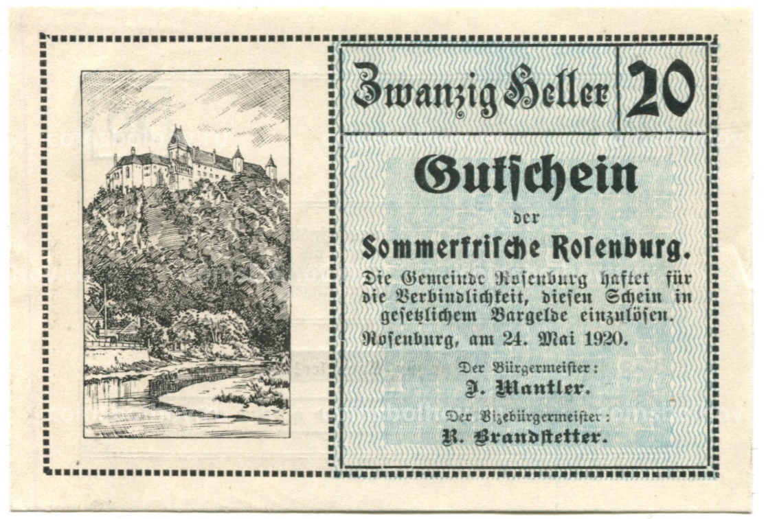 20 геллеров 1920 года Австрия — Розенбург (нотгельд)