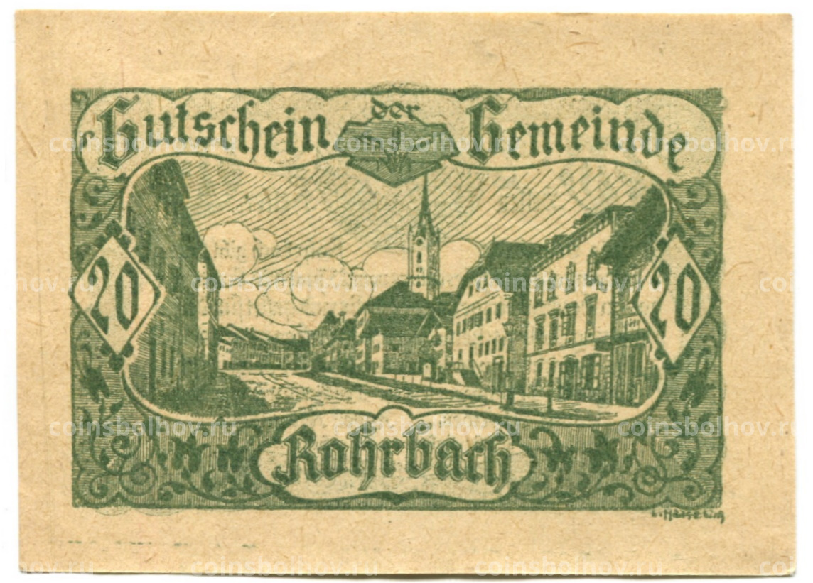 Банкнота 20 геллеров 1920 года Австрия — Рорбах (нотгельд)