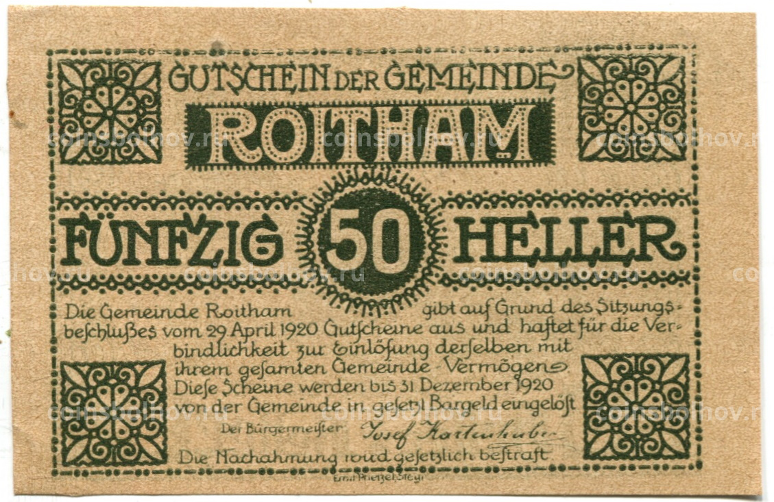 50 геллеров 1920 года Австрия — Ройтам (нотгельд)