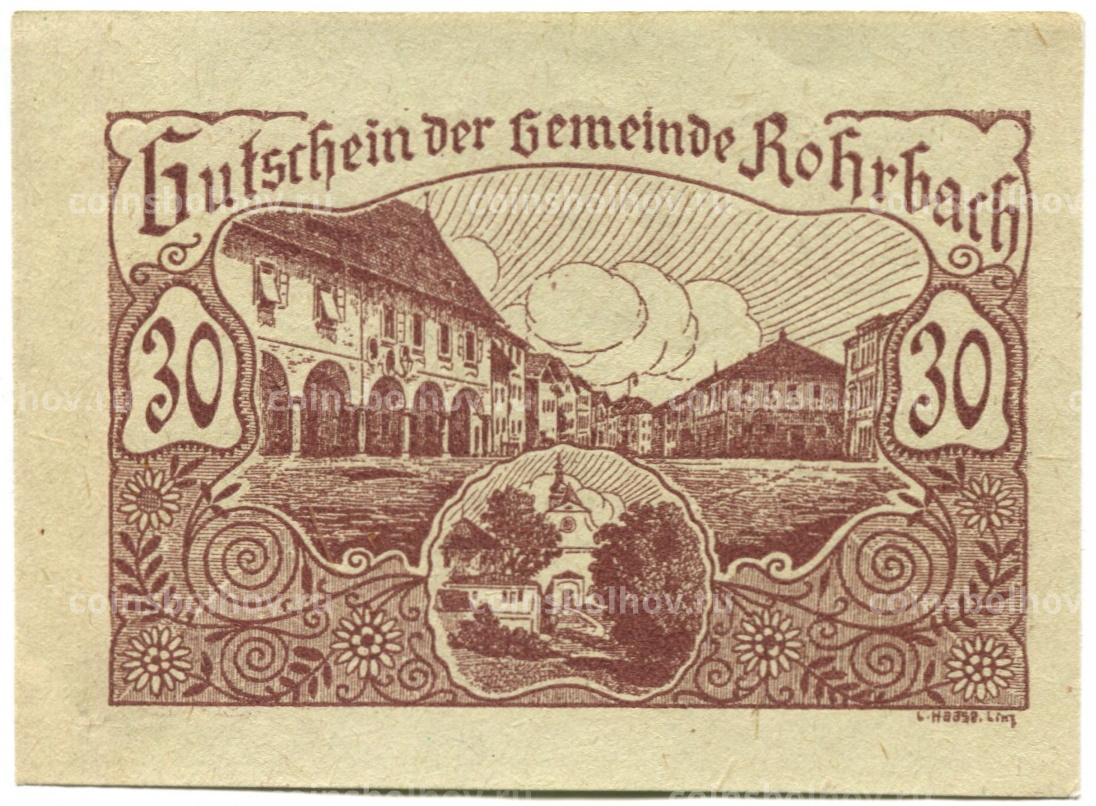 30 геллеров 1920 года Австрия — Рорбах (нотгельд)