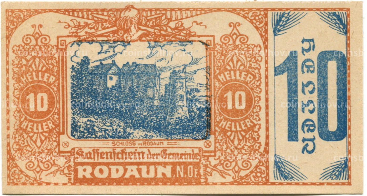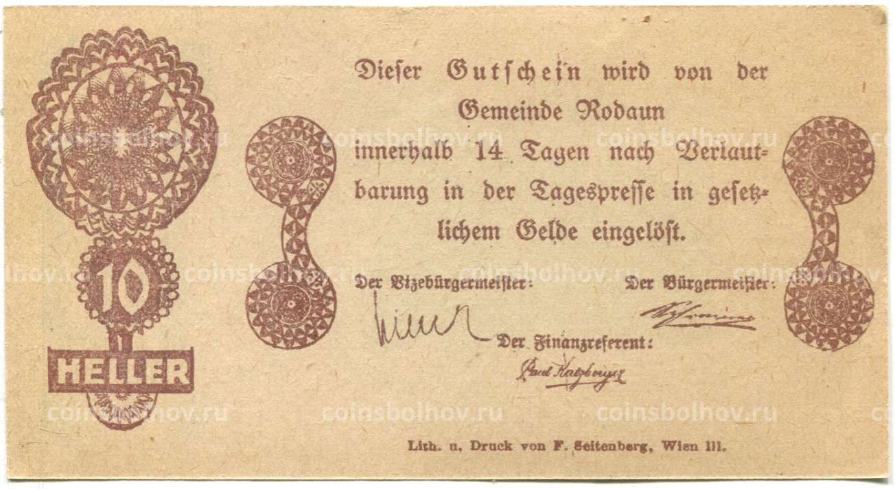 10 геллеров 1920 года Австрия — Родаун (нотгельд)