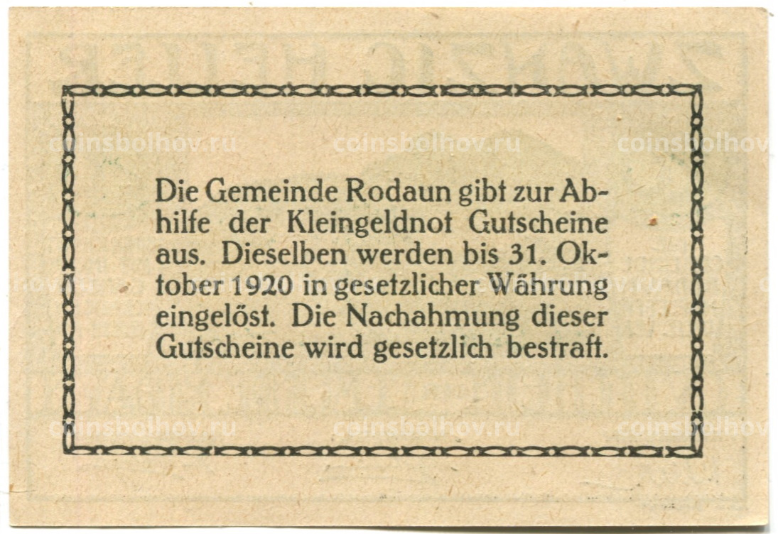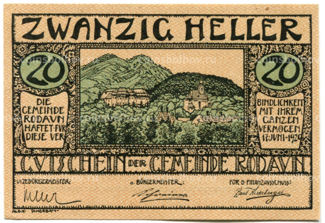 20 геллеров 1920 года Австрия — Родаун (нотгельд)