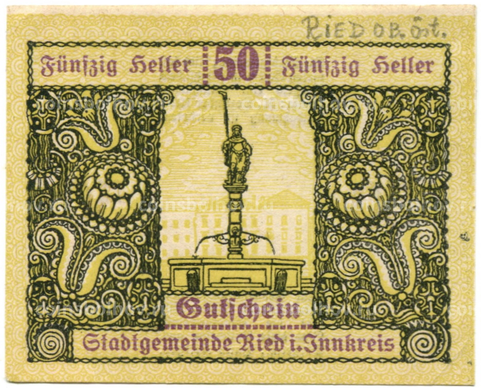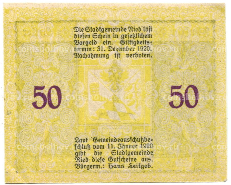 Банкнота 50 геллеров 1920 года Австрия — Рид-им-Иннкрайс (нотгельд)