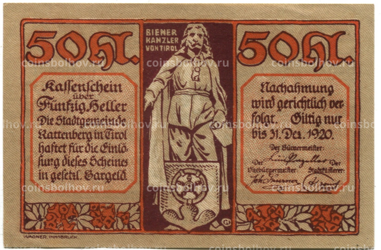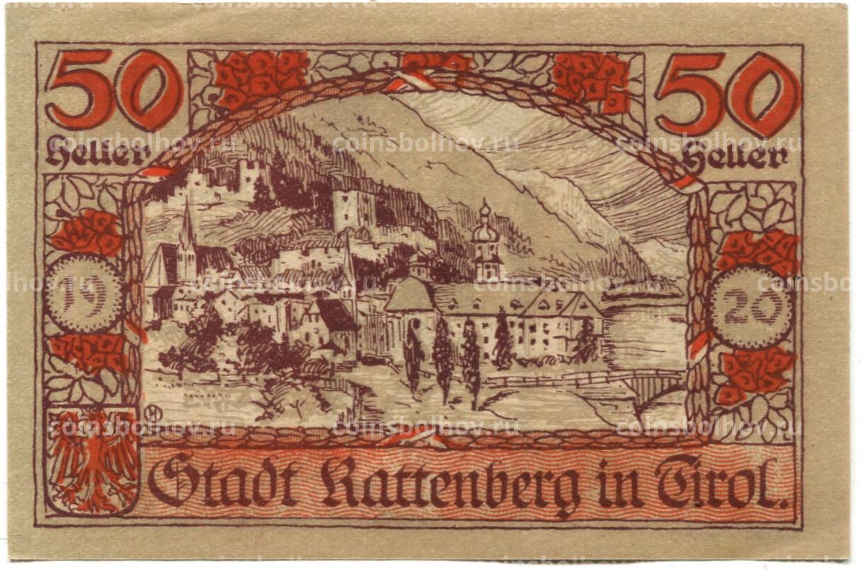 50 геллеров 1920 года Австрия — Раттенберг (нотгельд)