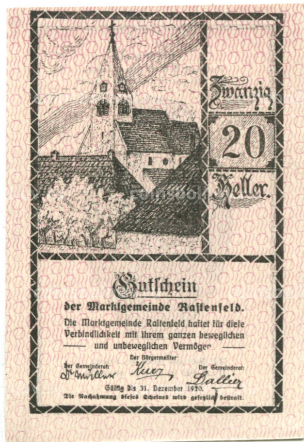 20 геллеров 1920 года Австрия — Растенфельд (нотгельд)