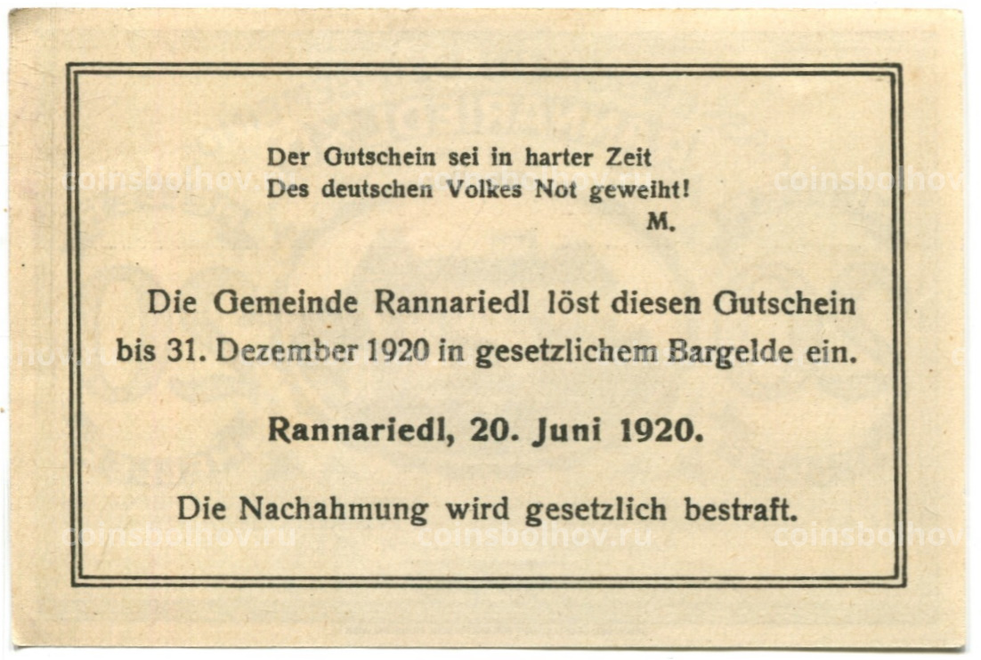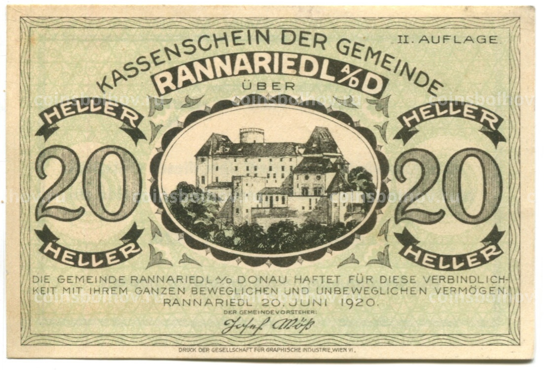 20 геллеров 1920 года Австрия — Раннариедль (нотгельд)