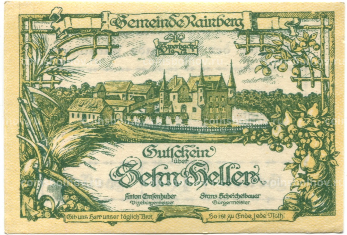 10 геллеров 1920 года Австрия — Райнсберг (нотгельд)