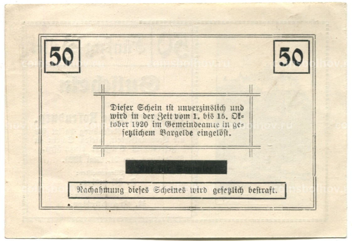 50 геллеров 1920 года Австрия — Розенбург (нотгельд)