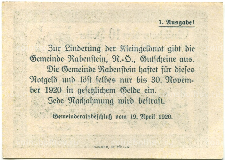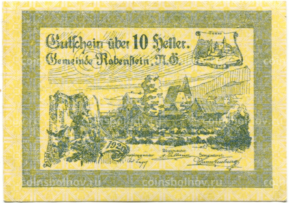 Банкнота 10 геллеров 1920 года Австрия — Рабенштайн-ан-дер-Пилах (нотгельд)