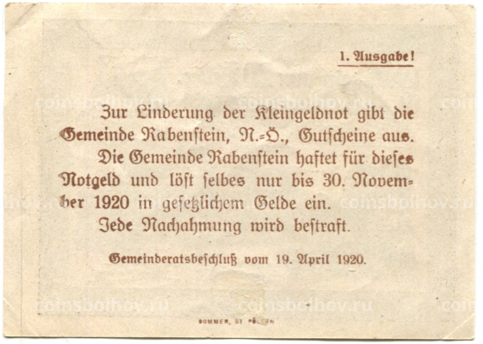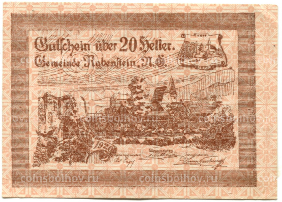 Банкнота 20 геллеров 1920 года Австрия — Рабенштайн-ан-дер-Пилах (нотгельд)