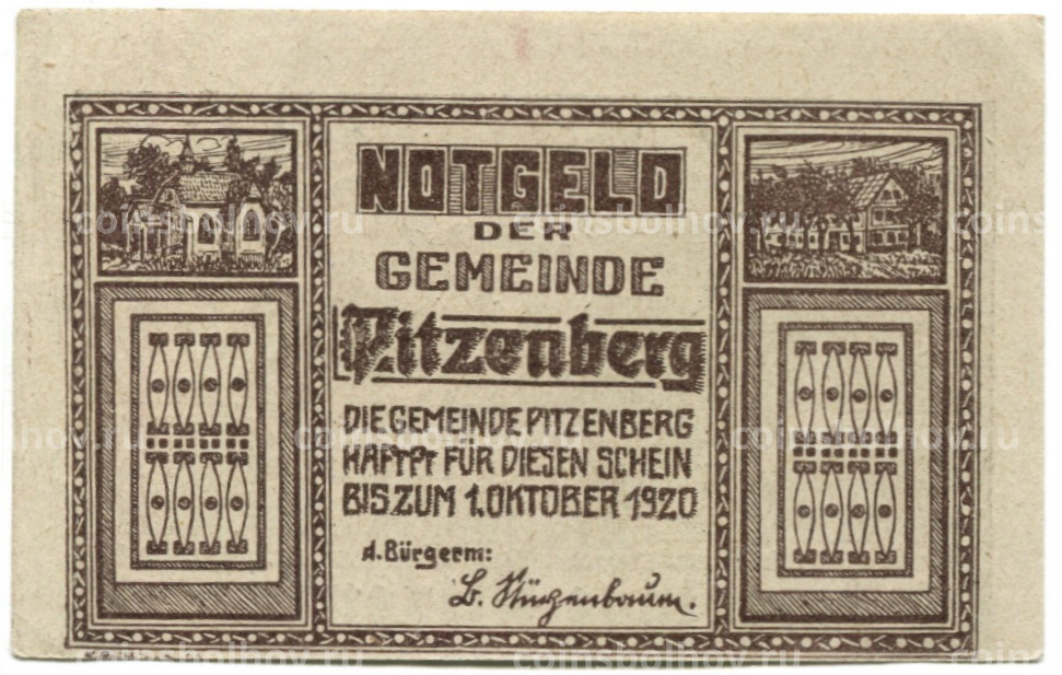 50 геллеров 1920 года Австрия — Питценберг (нотгельд)