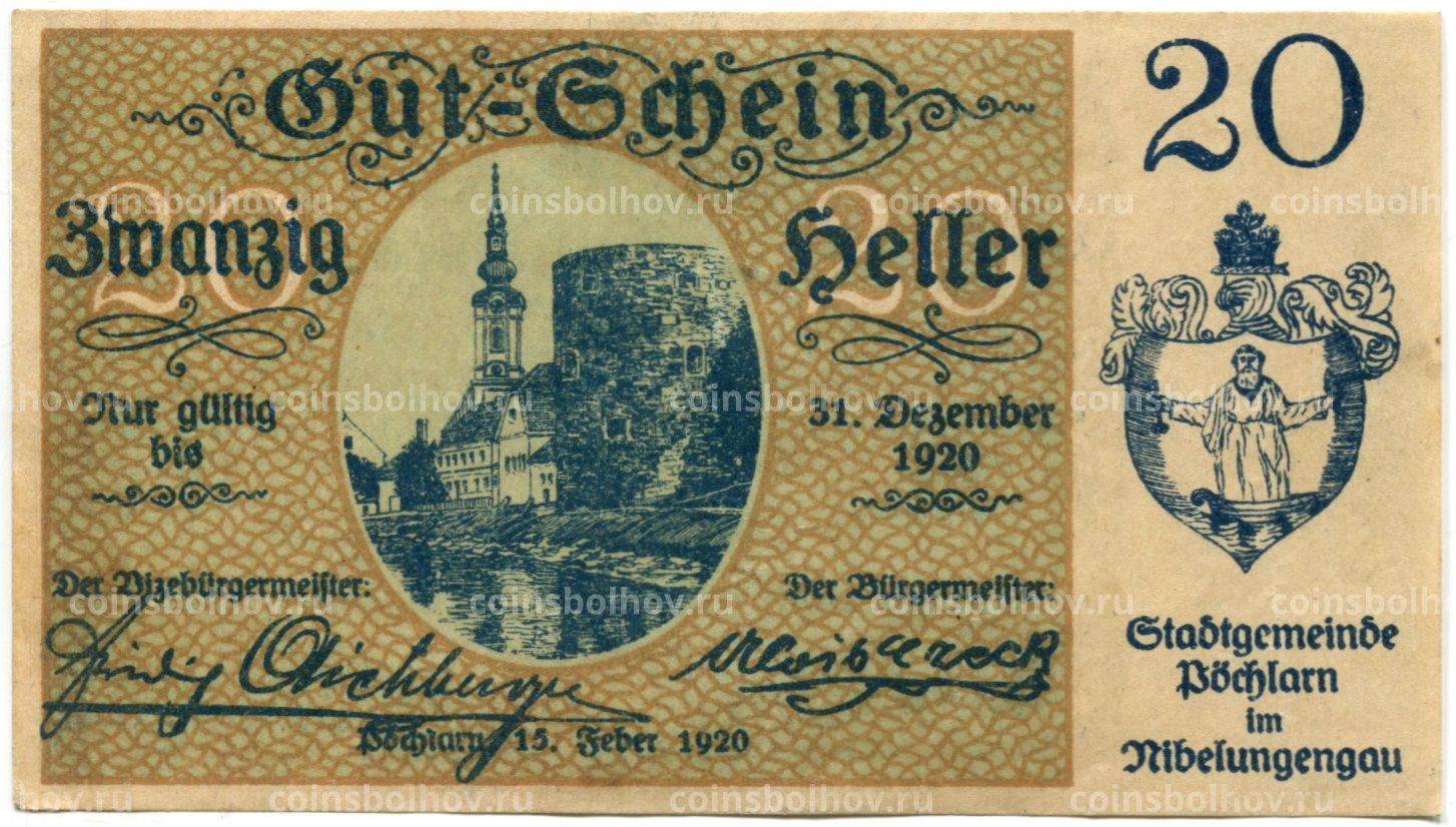 20 геллеров 1920 года Австрия — Пёхларн (нотгельд)