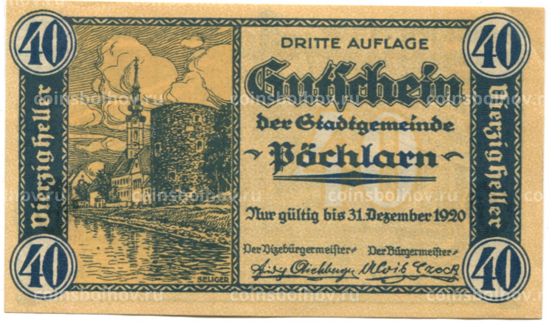 40 геллеров 1920 года Австрия — Пёхларн (нотгельд)