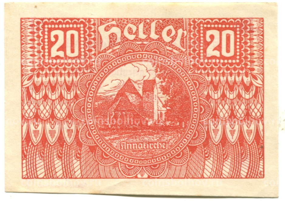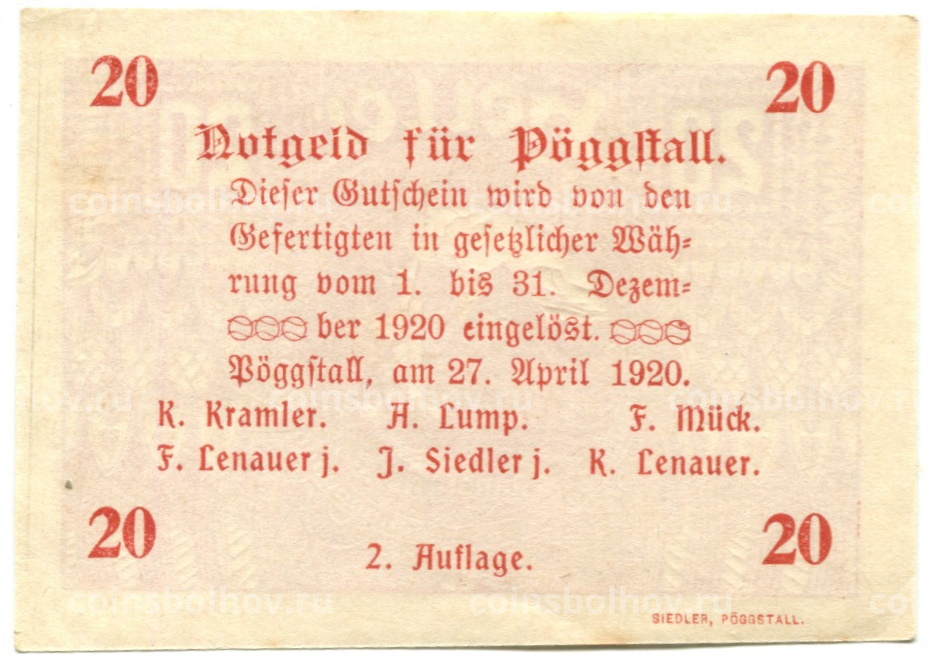20 геллеров 1920 года Австрия — Пёггшталь (нотгельд)